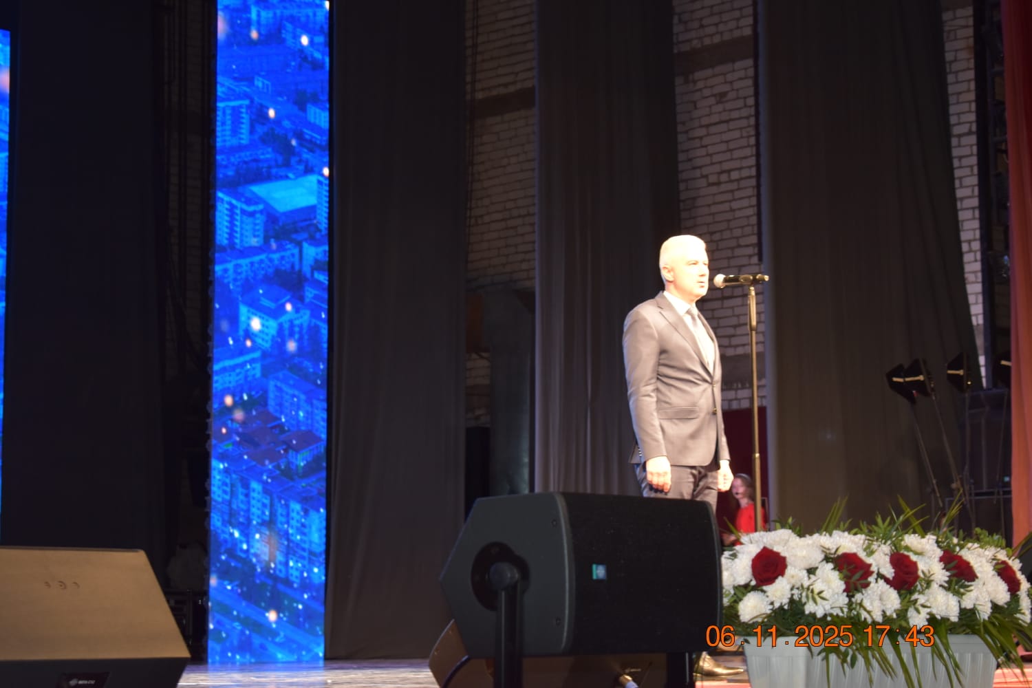 «Уважаемые первостроители! Для меня большая честь находиться среди вас, в этом прекрасном зале, в день нашего общего большого праздника! 6 ноября 1975 года, с подписанием Указа о присвоении рабочему поселку статуса города республиканского подчинения, началась современная история Нерюнгри. Горжусь тем, что мои родители - тоже первостроители! Они приехали строить наш город в 1978 году. Мама Галина Николаевна – теперь она Почетный строитель РФ, трудилась мастером СУ-7. Ее первыми объектами в нашем городе стали школа N3 и столовая N10. Папа Андрей Константинович работал бригадиром СУ-17 и в домостроительном комбинате. Дорогие друзья! Разрешите выразить вам глубокую искреннюю благодарность за ваш героический труд в тяжелейших условиях, за строительство города Нерюнгри, поселков Серебряный Бор, Беркакит, Золотинка, за все возведенные вами объекты Южно-Якутского территориально-производственного комплекса. Хочу пожелать вам крепкого здоровья и долголетия, счастья и семейного благополучия, неиссякаемой жизненной энергии, внимания и заботы близких!», - приветствовал участников торжественного мероприятия Александр Кошуков.