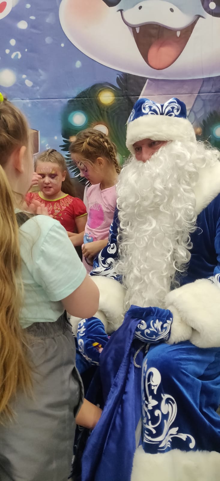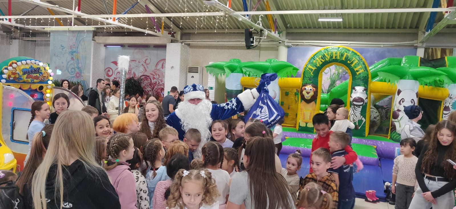 Игры с Дедом Морозом закончились позированием в фотозоне и вручением подарков. Как же это здорово, когда дети всей Земли ожидают Новый год в мире, тепле, заботе, не подозревая, что где-то идёт война, и Дед Мороз может быть не добрым...
