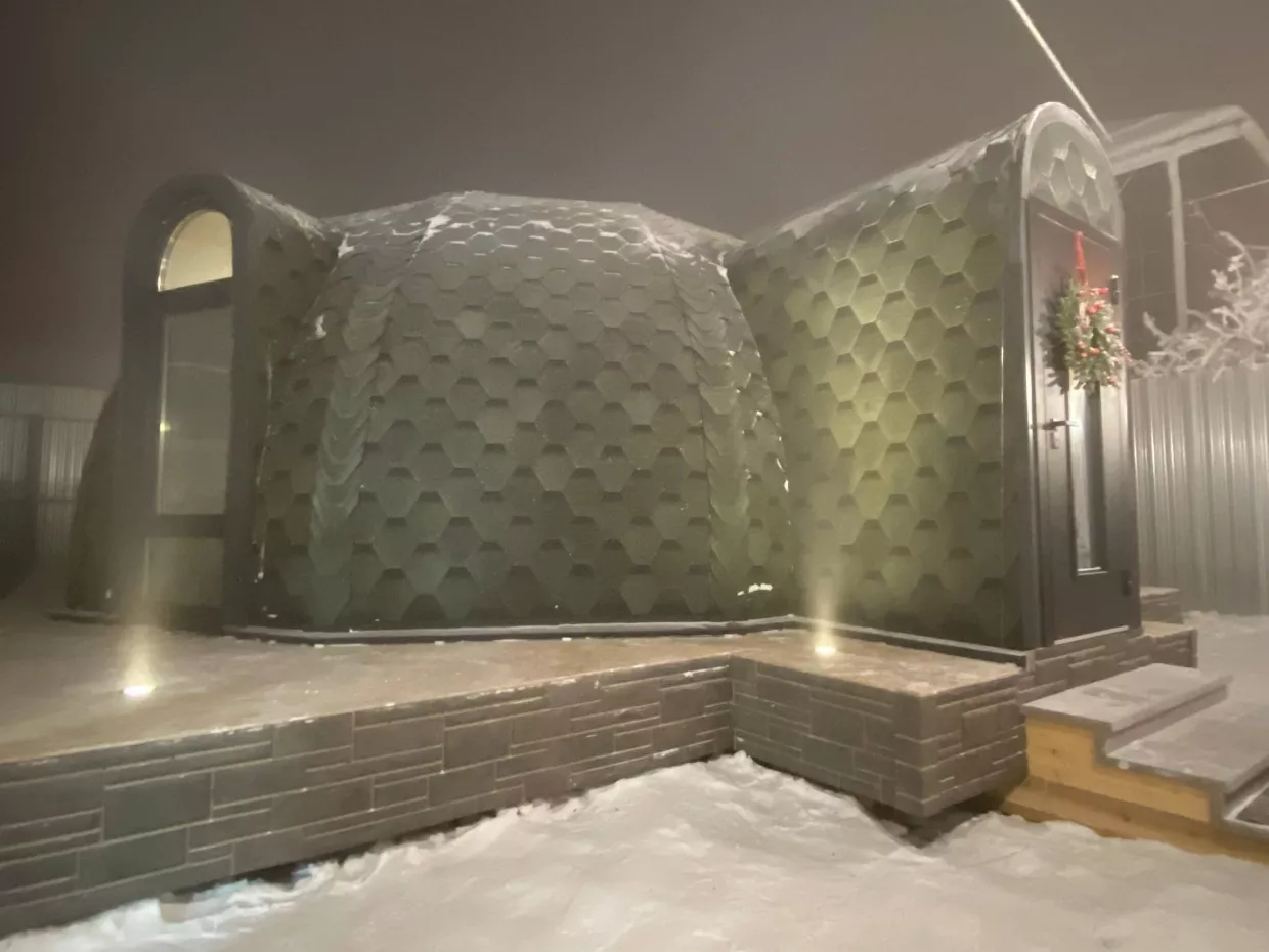 Министр предпринимательства, торговли и туризма Георгий Андреев представил купольный дом в Якутске. Его привезла компания "Купол-дом".