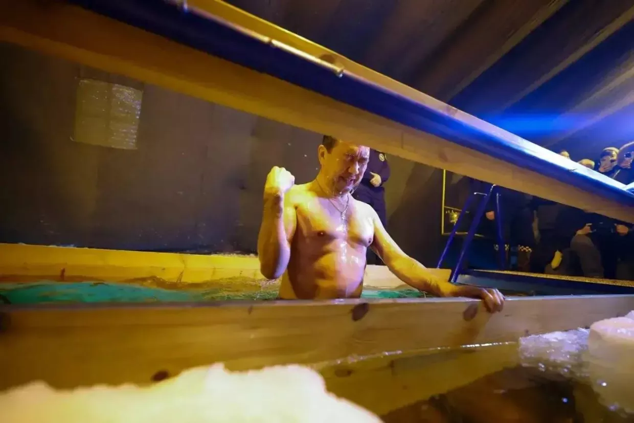 Глава Якутии Айсен Николаев в крещенский сочельник после Божественной литургии окунулся в освящённую купель.
