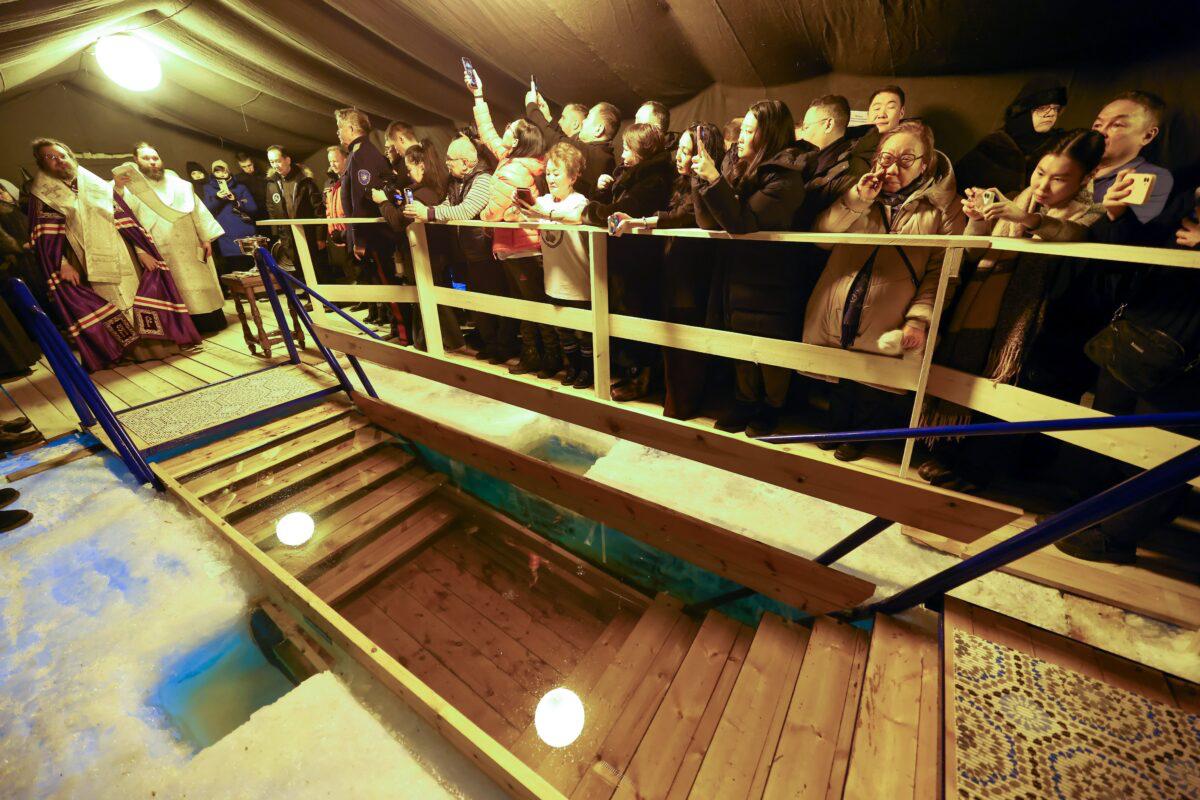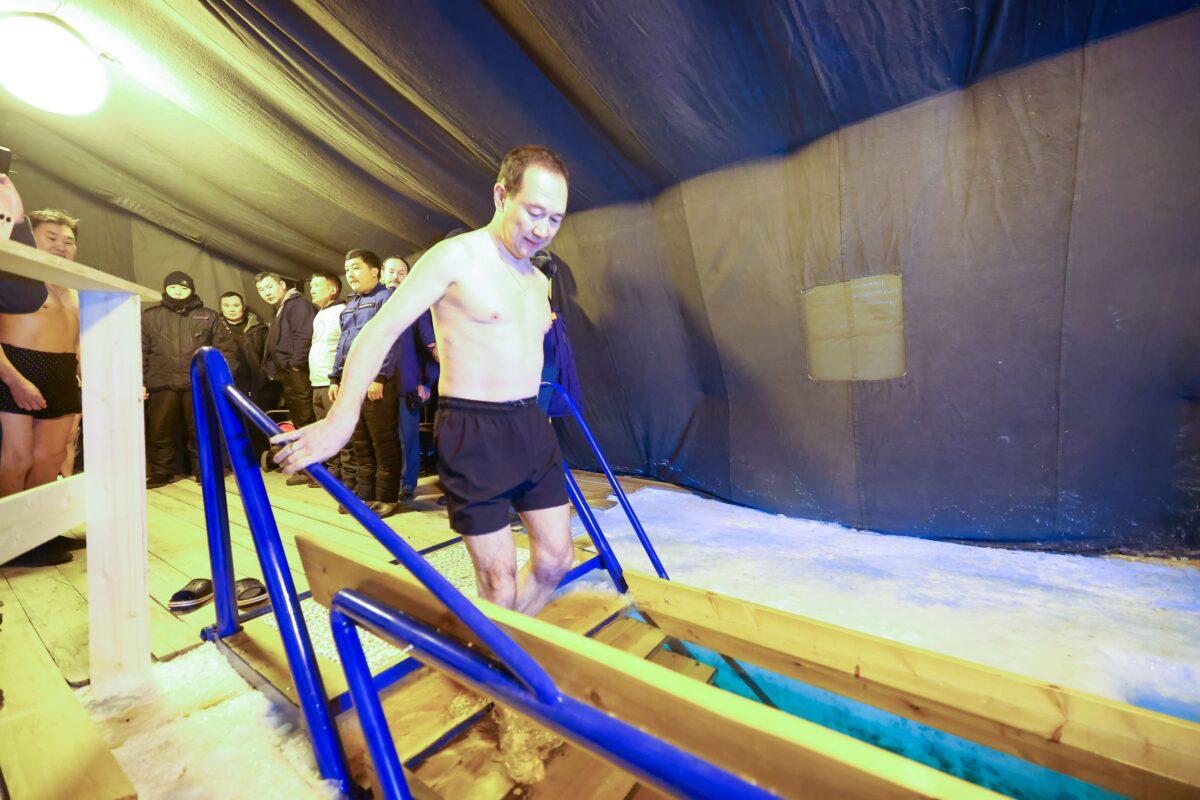 В Якутии, самом холодном регионе России, с 18 по 20 января проходят традиционные крещенские купания, приуроченные к празднику Крещения Господня. В городе Якутске чин великого освящения воды совершил архиепископ Якутский и Ленский Роман. После освящения купели на Зеленом лугу по сложившейся традиции первым в иордань окунулся Глава республики Айсен Николаев.