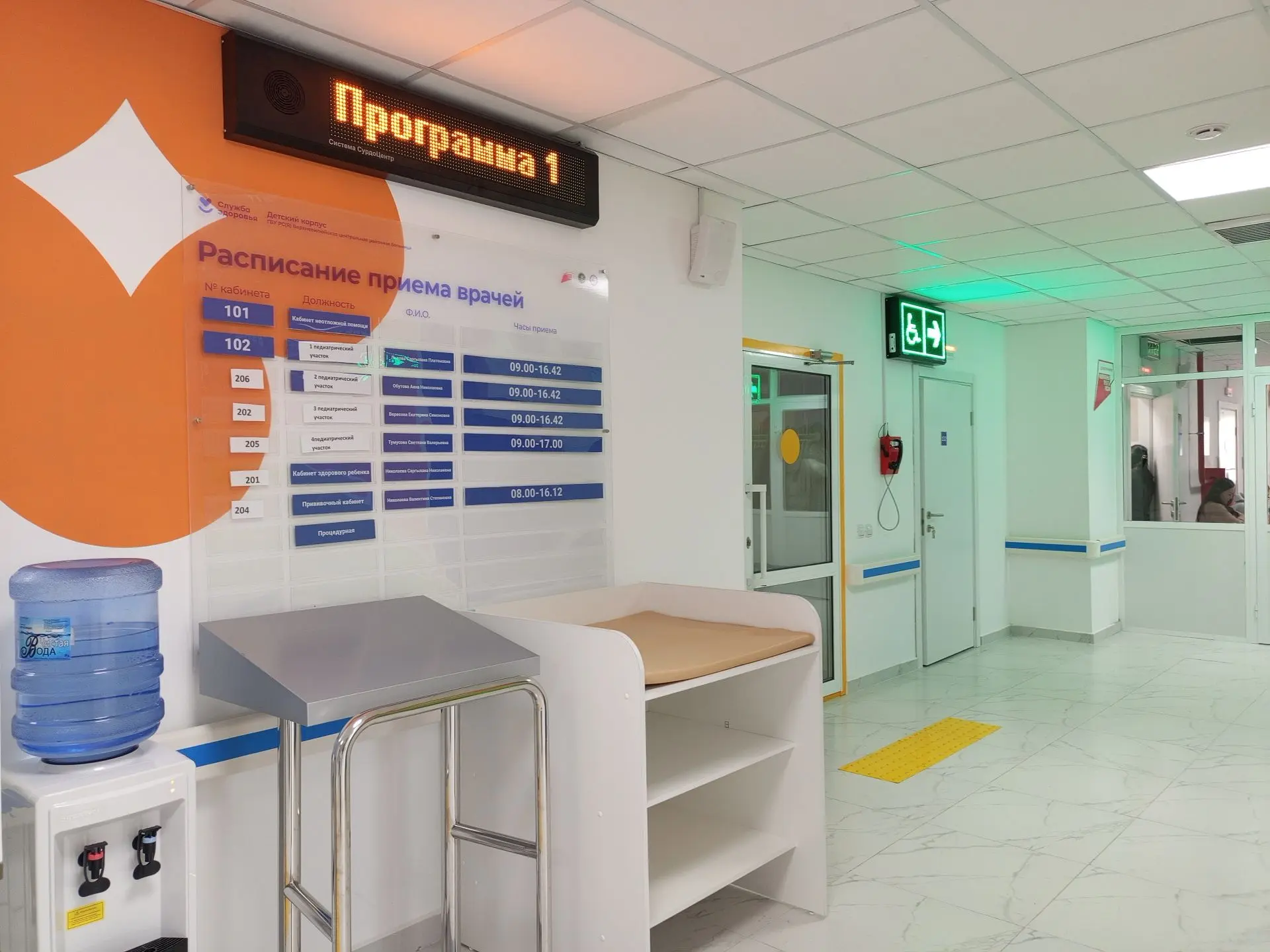 Именно таким оказался новый лечебный корпус, где функционируют стационарное отделение на 13 коек и 2 койки дневного стационара. Детская поликлиника, рассчитанная на 50 посещений в смену, предлагает полный спектр услуг: от педиатрических приемов на четырех участках до специализированных кабинетов, включая прививочный, процедурный, стоматологический, а также кабинет неотложной помощи и фильтр-бокс. Объект оснащен необходимой медицинской техникой и мебелью. К услугам врачей — полностью оборудованные кабинеты эндоскопии, ультразвуковой и функциональной диагностики, ЭКГ и пр. А прием пациентов, который начался сразу после новогодних праздников, проходит в светлых и теплых помещениях.