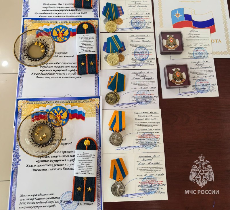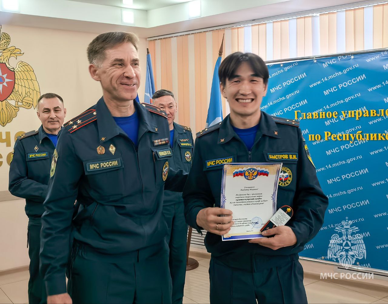 Почётной грамотой МЧС России — за значительный вклад в обеспечение безопасности населения, успешное выполнение поставленных задач и высокие показатели в работе - Слюсарев Денис.
