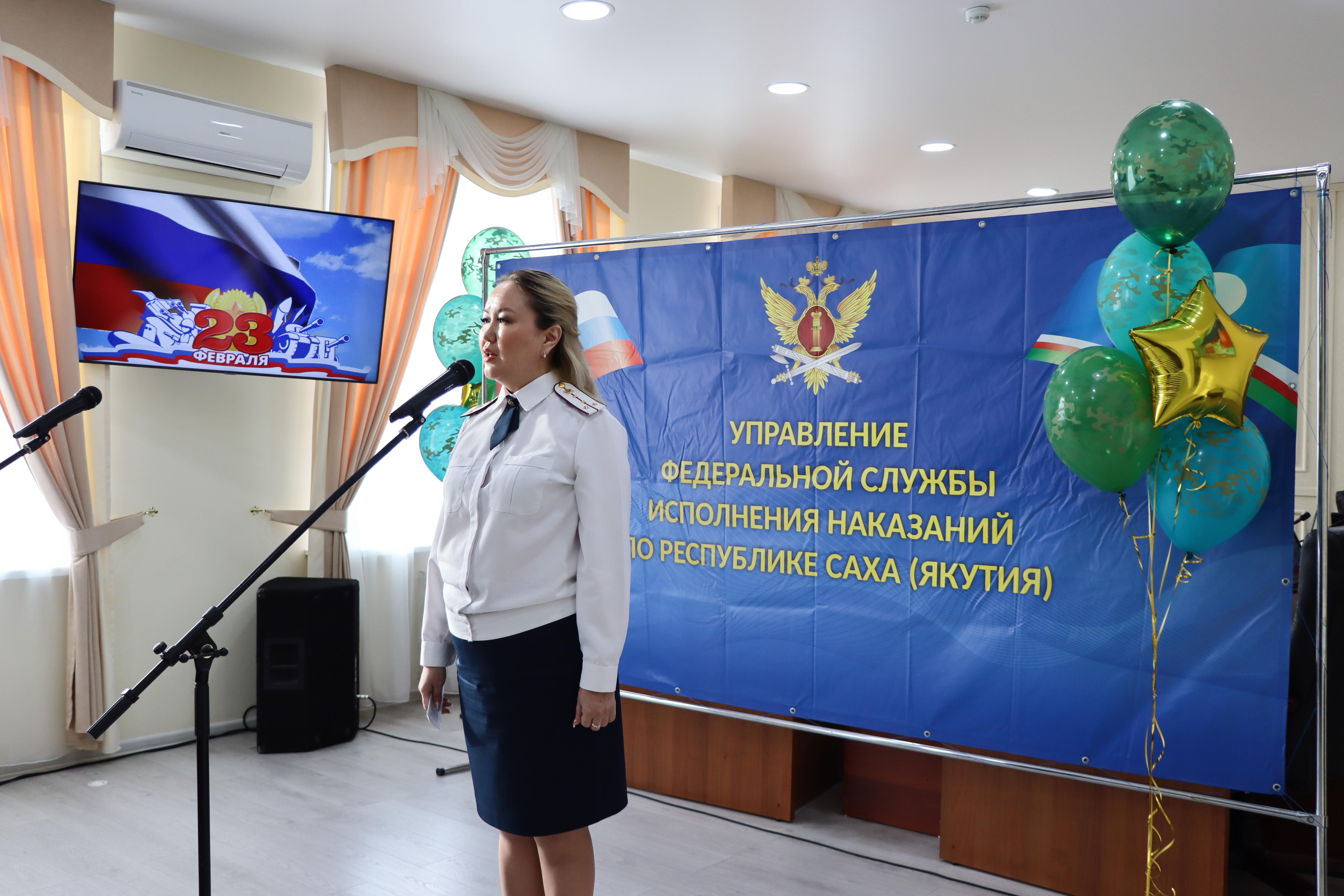 После чего состоялся концерт, подготовленный сотрудницами УФСИН для коллег-мужчин. С теплотой в душе и любовью к Отечеству они исполнили песни «Матушка Земля», «Смуглянка», «Пора в путь-дорогу», «Песня о тревожной молодости», стихотворения «Жди меня», «Мы говорили с мамой о войне» и многие другие.