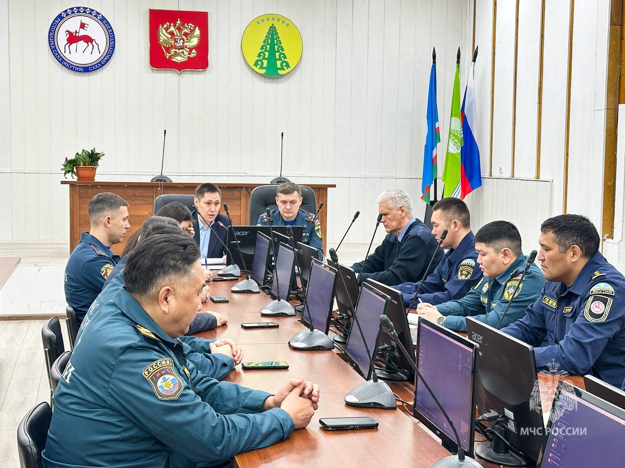 Первым пунктом пребывания в новом районе стала встреча с администрацией. В зале заседаний собрались представители районной власти, главы наслегов и руководители социальных учреждений. Стороны обсудили текущую обстановку с пожарами, подвели промежуточные итоги работы в условиях особого противопожарного режима и скорректировали планы профилактических мероприятий.