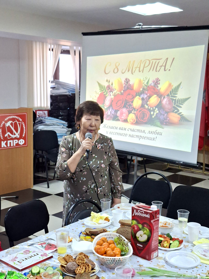 В этот же день руководители коммунистов рескома и горкома КПРФ организовали замечательный праздник и для своих соратниц активисток города Якутска. Открыл мероприятие Вячеслав Куличкин.