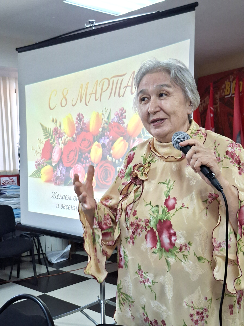 Второй секретарь Якутского горкома КПРФ Анатолий Товаров в своей речи напомнил, что праздник 8 Марта связан с именами Клары Цеткин и Розы Люксембург. Советская Россия в 1921 году первой провозгласила 8 Марта государственным праздником. Анатолий Ильич от всей души пожелал женщинам-коммунистам успехов в борьбе за идеи добра и справедливости, любви и надежды.