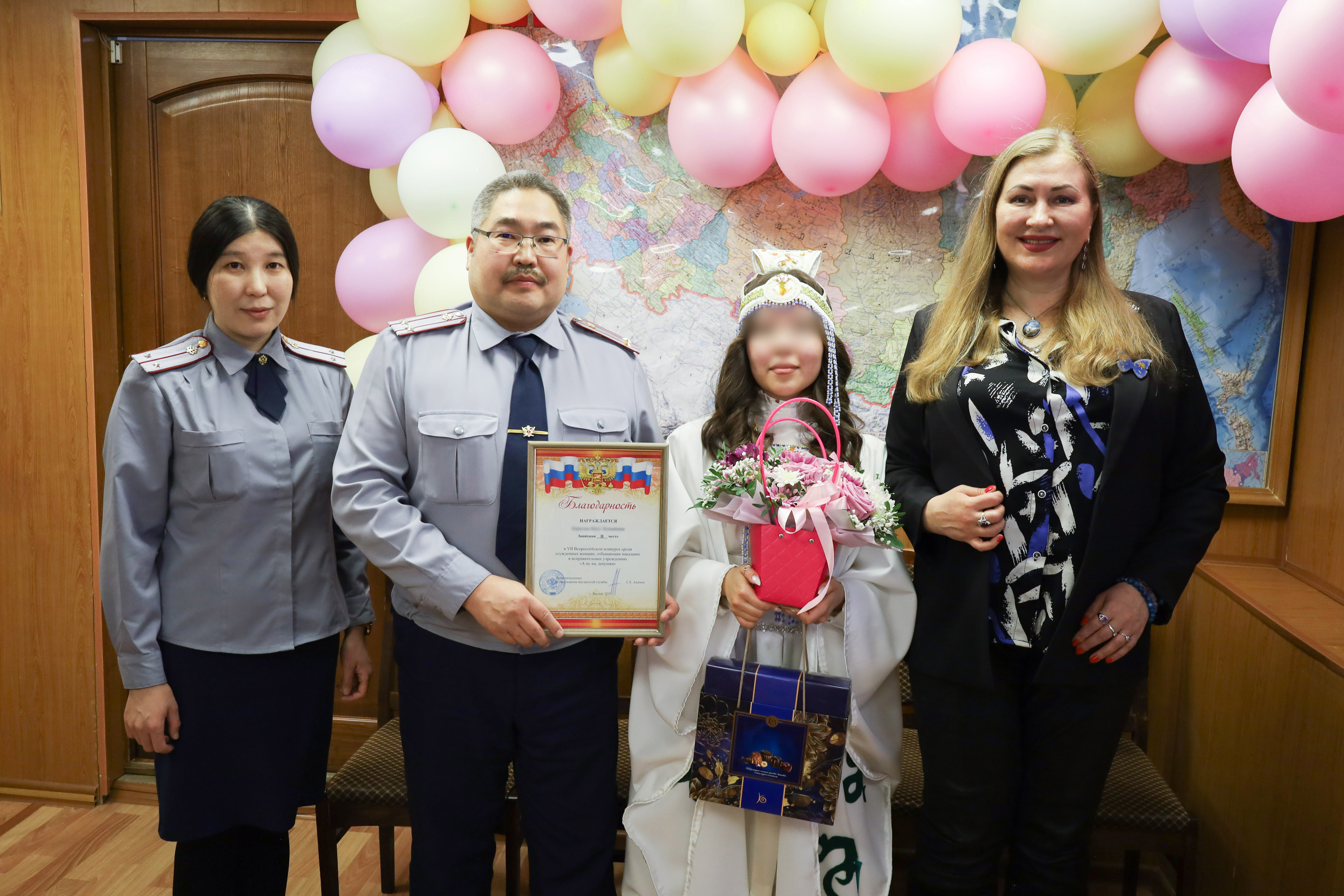 От УФСИН России по Республике Саха (Якутия) на награждении присутствовали заместитель начальника территориального органа Светлана Серебрякова, начальник исправительного центра Павел Колосов и другие сотрудники, Президент региональной общественной организации по выявлению, реализации и укреплению творческого потенциала населения, а также по реализации мероприятий в области социальной сферы Республики Саха (Якутия) – творческий союз «Сила янтаря» Ольга Кудрявцева, осужденные.