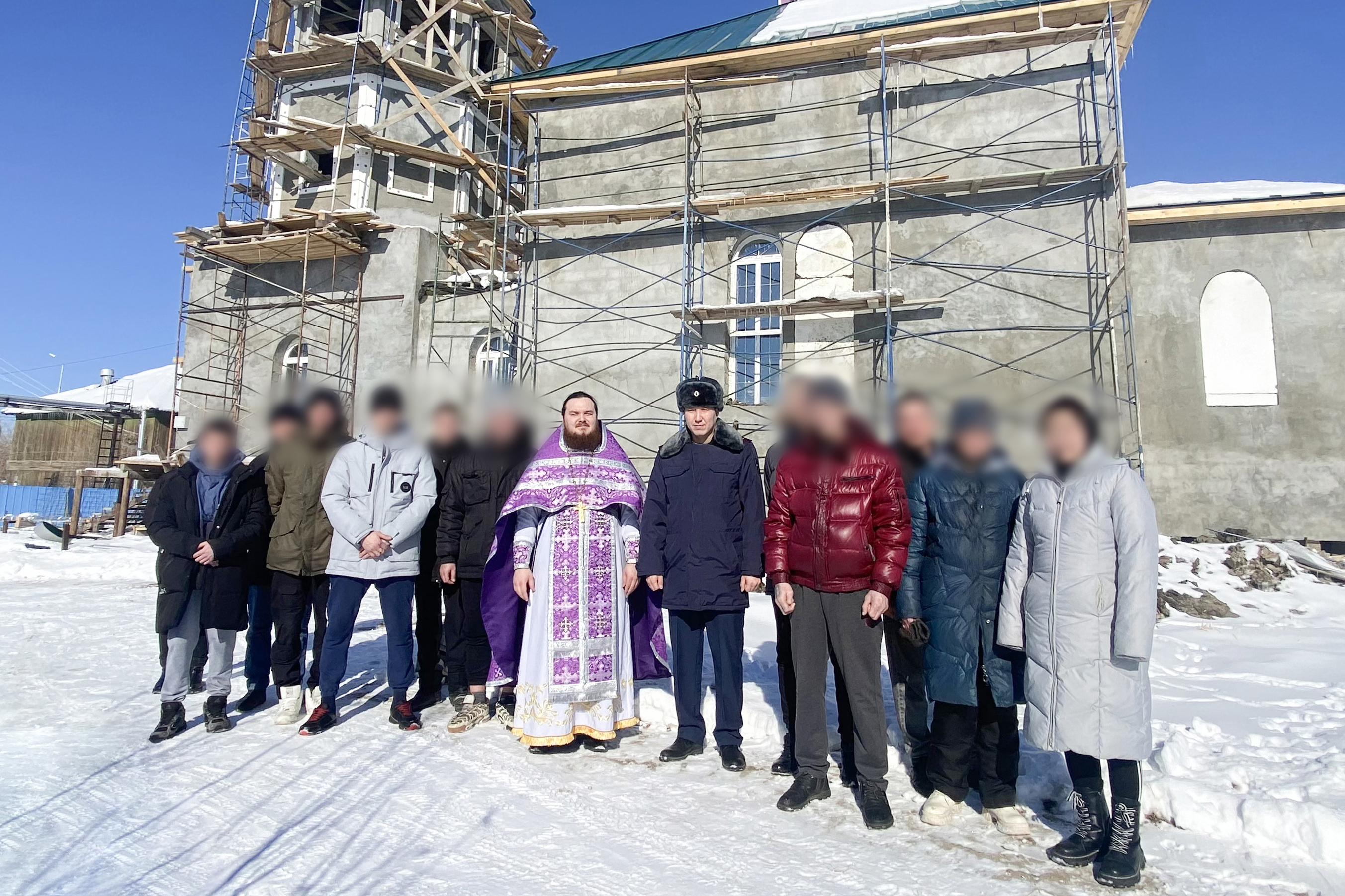 Осужденные, отбывающие наказание в КП-2, приняли участие в воскресном богослужении в строящемся Крестовоздвиженском храме.
