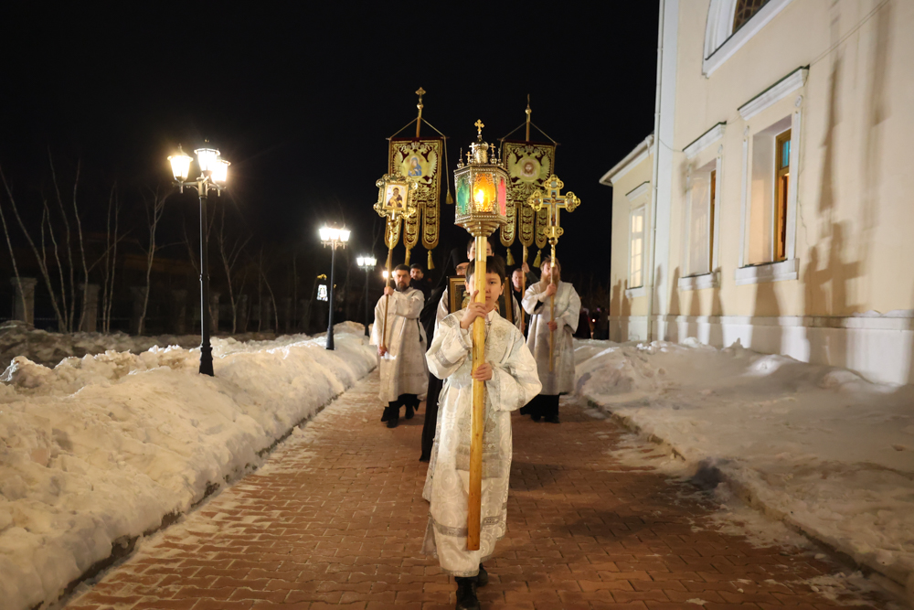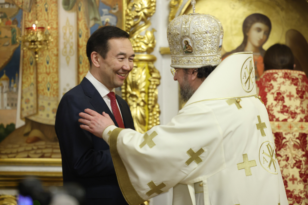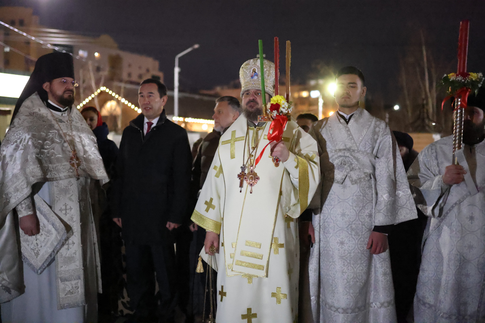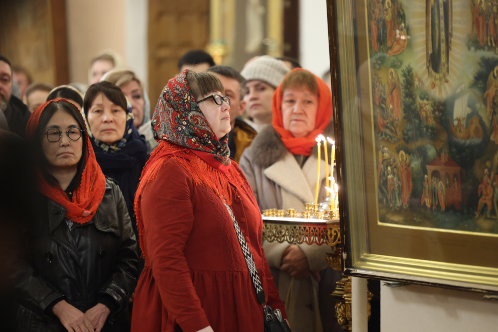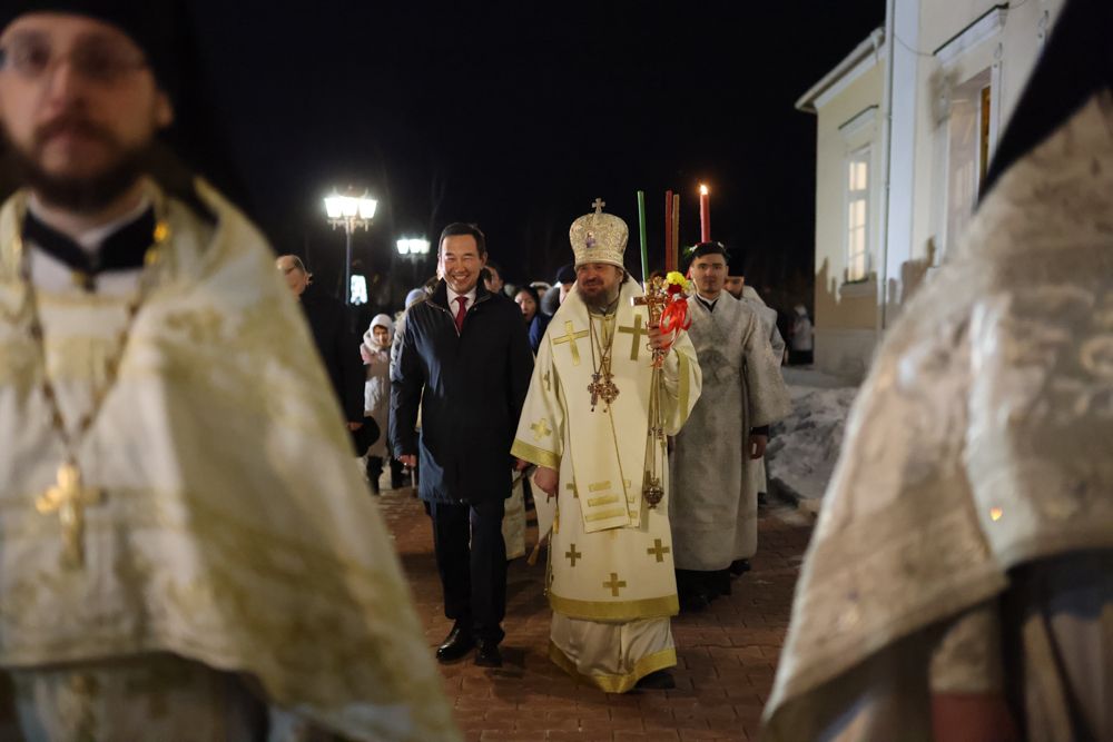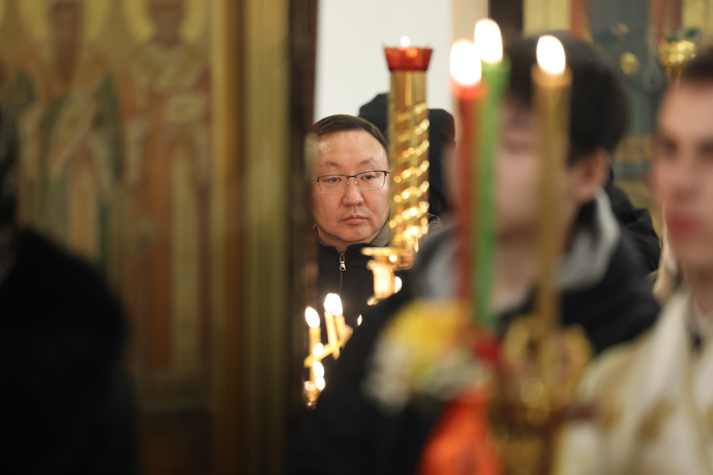 Богослужебные песнопения исполнили соборный хор под управлением регента Екатерины Павловой и малый состав Симфонического хора Государственной филармонии Якутии под управлением хормейстера Л. А. Шумиловой.