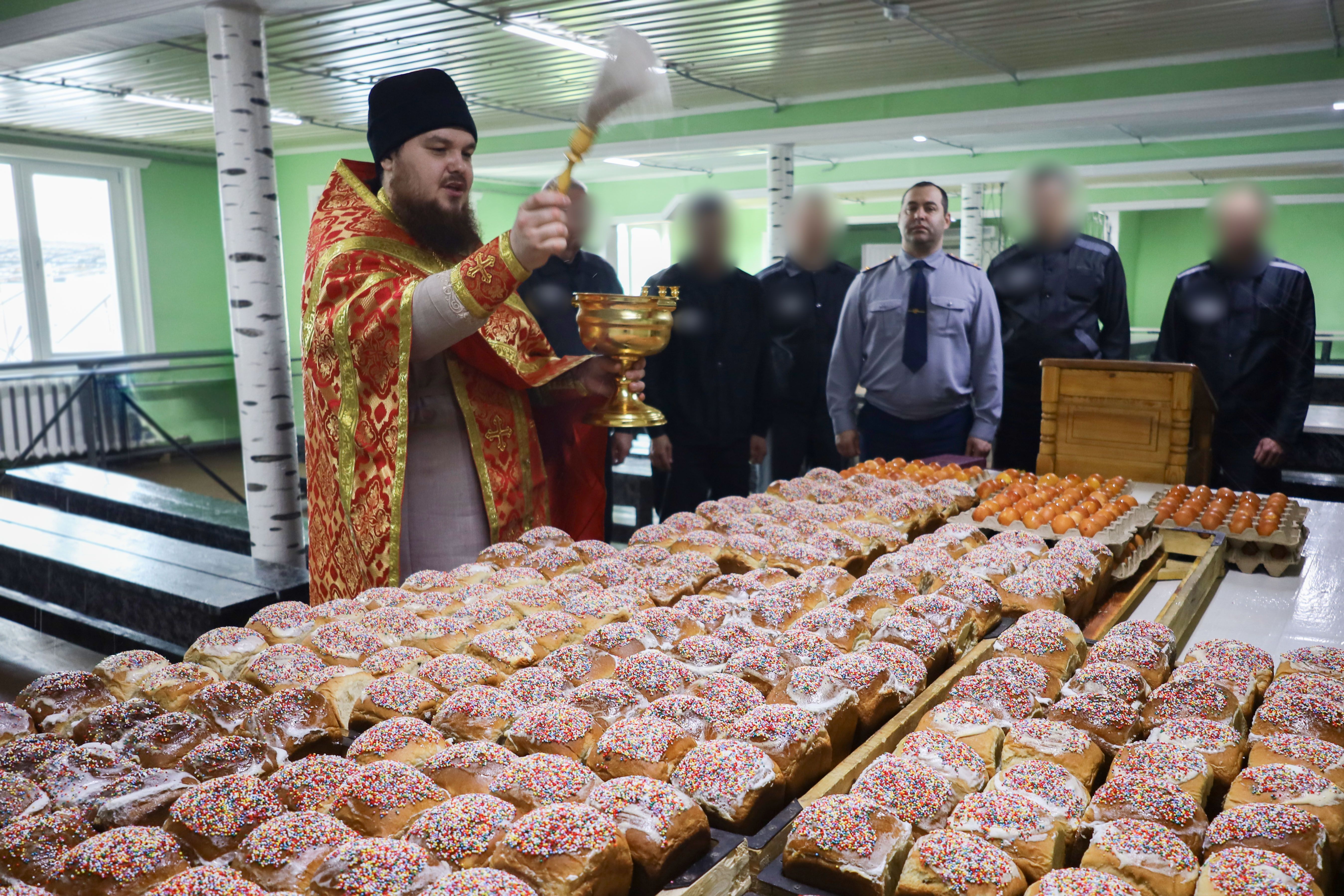 Для осужденных проведены пасхальные богослужения и освящены куличи и яйца.