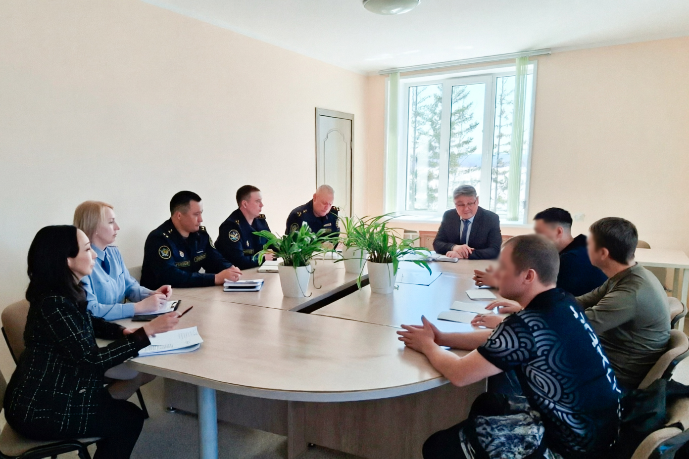 Заместитель начальника УФСИН Анатолий Вальтер, заместитель главы Хангаласского района Якутии Николай Степанов и социальный координатор государственного фонда «Защитники Отечества» Екатерина Перевалова провели встречу с участниками специальной военной операции, желающими трудоустроиться в уголовно-исполнительную систему.