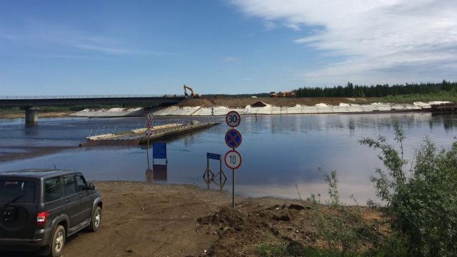 Напомним, что в текущем году эксплуатация наплавного моста осуществляется в крайний сезон. В настоящее время ведется строительство мостового перехода, который обеспечит круглогодичный и безопасный проезд на данном участке трассы А-331 «Вилюй».