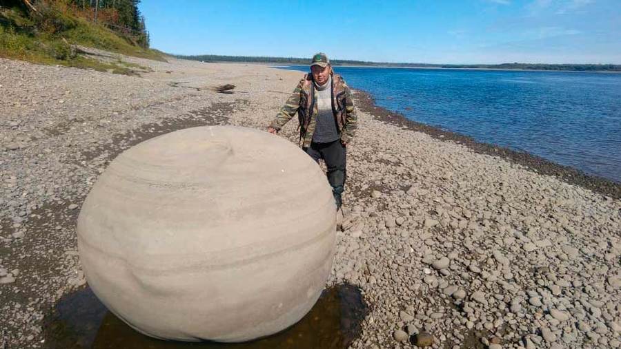 На берегу одного из островов Алдана лежит огромный камень – валун светлой окраски, удивительно правильной круглой формы. В прошлом году его обнаружили супруги Атаковы, главный электрик Крест-Хальджая Семен Васильевич с супругой Сарданой Семеновной. Они провели фотосессию, и их фотографии заполнили тогда весь инстаграмм.