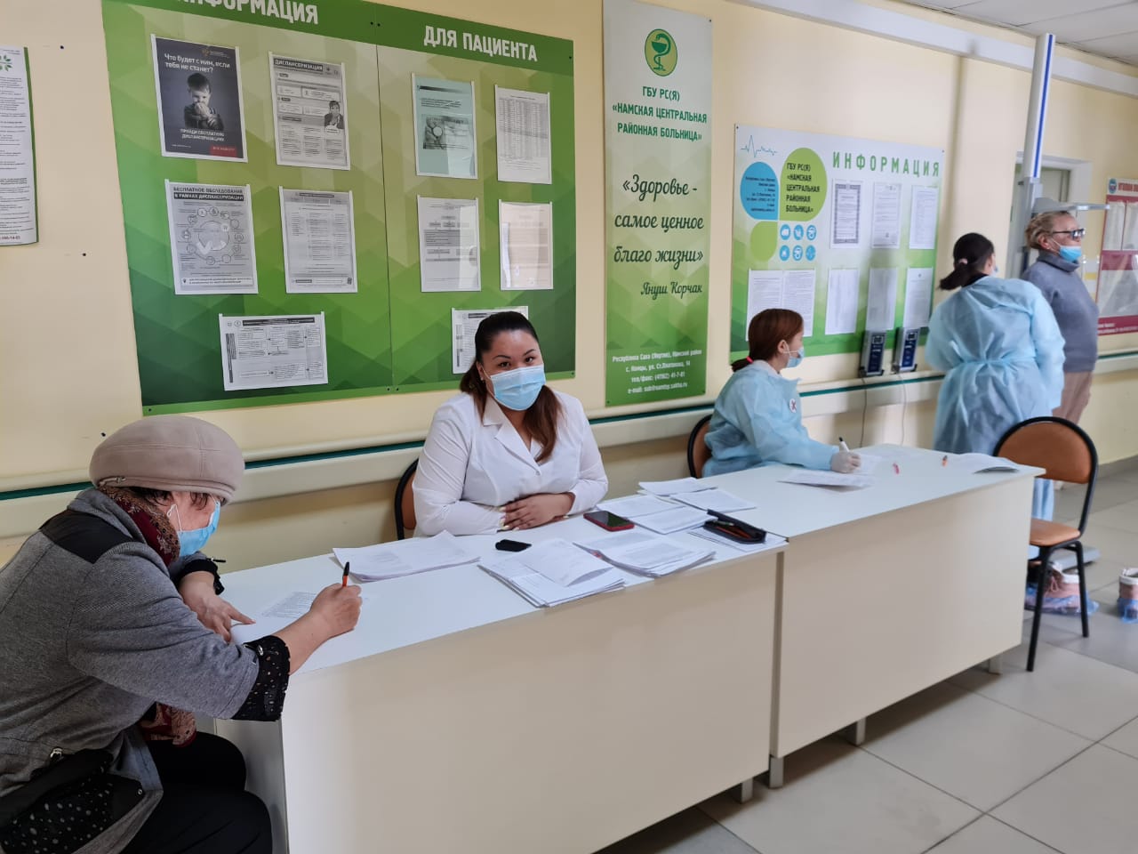 Пациентов намских коллег осмотрели ревматолог ЯРКБ Людмила Леонтьева, эндокринолог Валентина Кычкина и гастроэнтеролог Марианна Степанова.