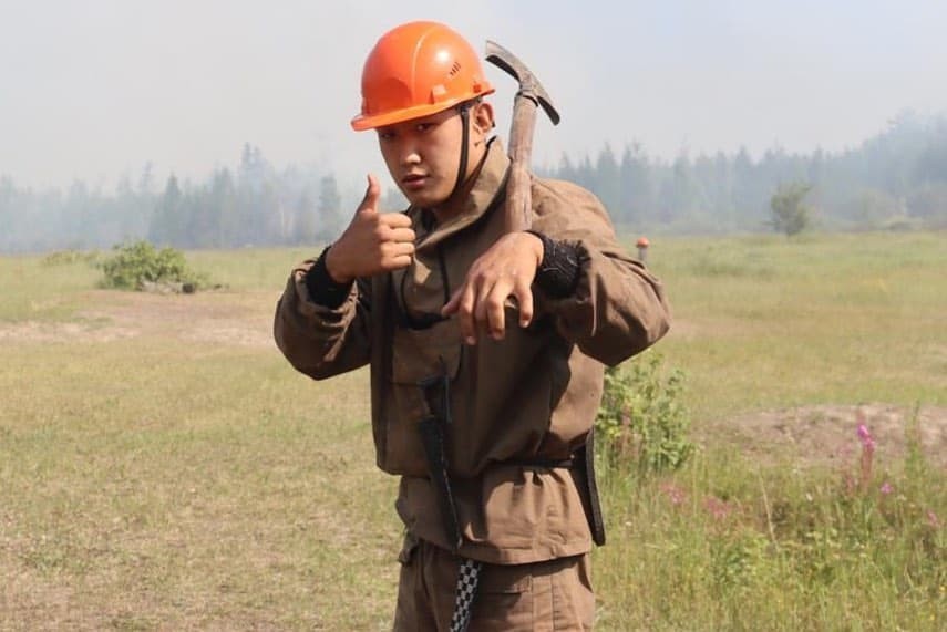 Побывал в местности Ойбон-Кюель Атамайского наслега. В своем летнике нас встретил старожил наслега Иван Петрович Фёдоров, который вместе со всеми работает на тушении лесных пожаров.