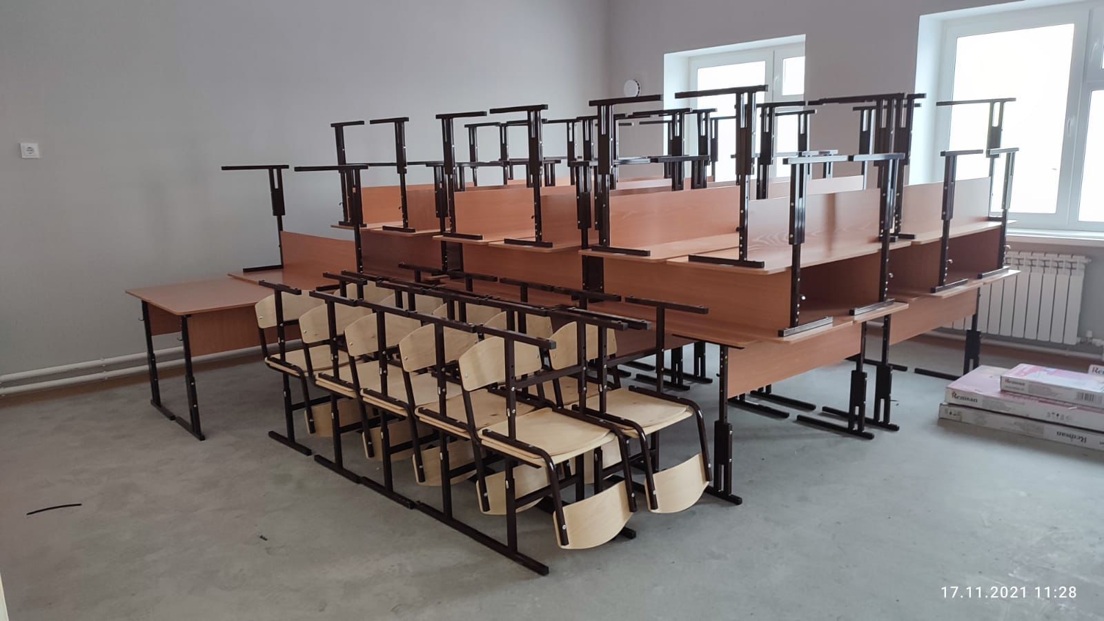 Новая одноэтажная начальная школа прямоугольной формы имеет общую площадь 531,27 кв. метров. Стройготовность объекта составляет - 95%.