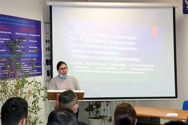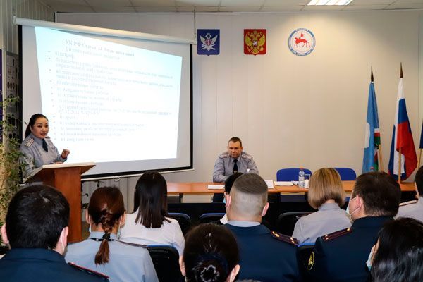 Руководители уголовно-исполнительной инспекции УФСИН в целях повышения профессионального мастерства молодых коллег организовали двухдневный учебно-методический семинар по теме «Правовые и организационные основы деятельности УИИ». В нем приняли участие врио начальника УФСИН Владимир Игнаткин, начальник уголовно-исполнительной инспекции Варвара Аммосова и другие сотрудники, а также представители межведомственной комиссии по делам несовершеннолетних и защите их прав при Правительстве Республики Саха (Якутия), Центра социально-психологической поддержки семьи и молодежи, отдела организации деятельности участковых уполномоченных полиции и подразделений по делам несовершеннолетних и информационного центра МВД России по Республике Саха (Якутия), регионального Управления Федеральной службы судебных приставов.