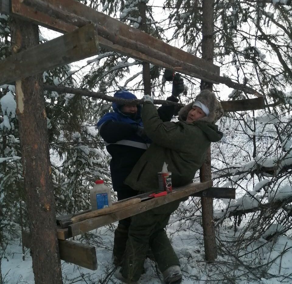 Госинспекторы ООПТ Вилюйского района Александр Николаев и Илья Степанов совместно с госинспектором Вилюйской инспекции ГЭН Андреем Колтовским на территории угодий общего пользования Вилюйского района в местности «Ийэбит үөһэ» соорудили новые кормушки для копытных животных, сообщает пресс-служба Минэкологии республики.