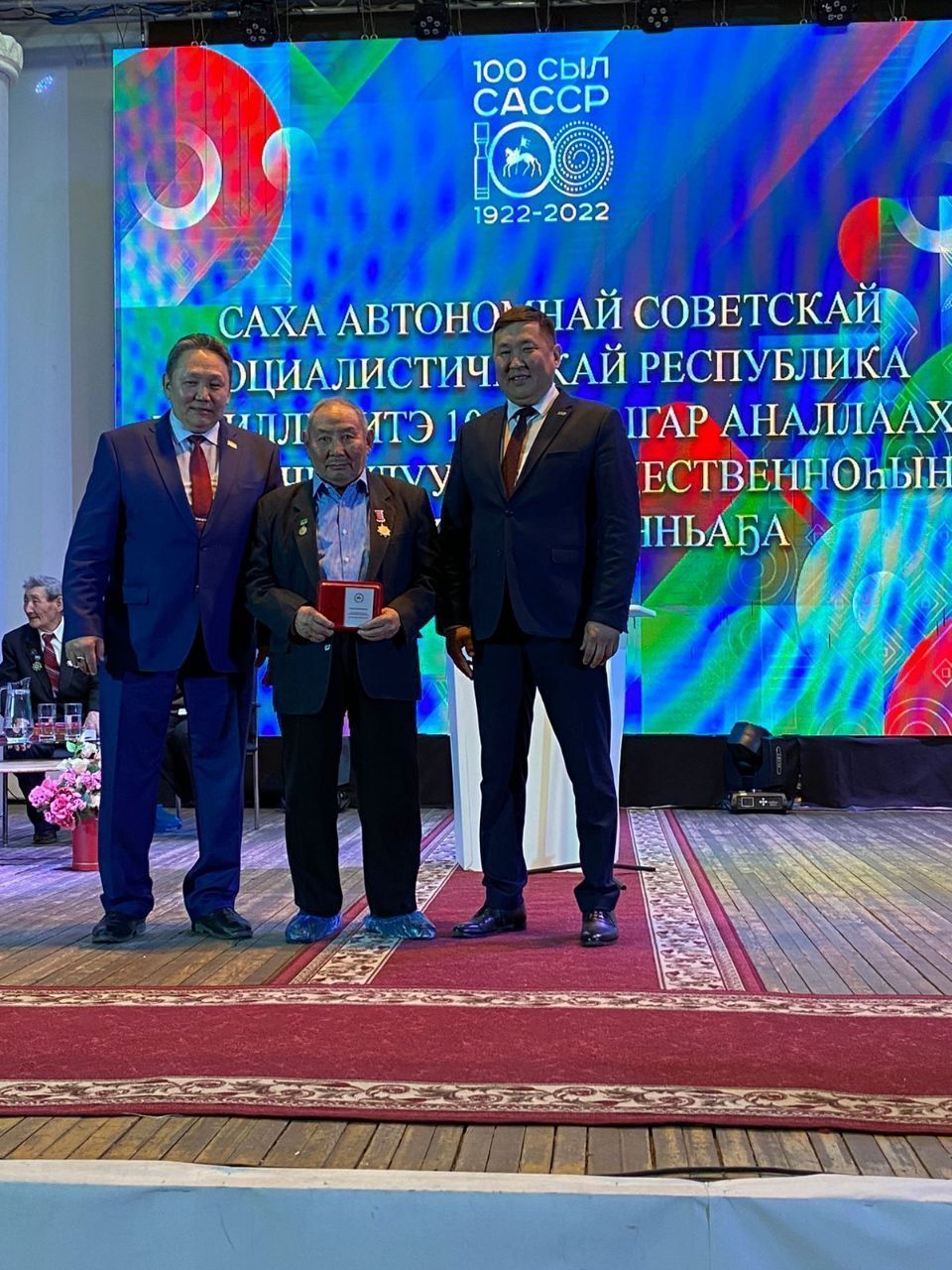 В ходе торжественного заседания общественности улуса вручены награды отличившимся работникам народного хозяйства улуса. За вклад в социально-экономическое развитие республики и многолетний добросовестный труд юбилейным знаком республики в ознаменование 100-летия Якутской АССР награждены ветеран труда, заслуженный работник народного хозяйства республики, почётный гражданин Чурапчинского улуса Семён Иванович Сергеев, ветеран труда, заслуженный учитель РСФСР, почётный гражданин Чурапчинского улуса Василий Петрович Чичигинаров, ветеран труда, заслуженный строитель республики, почётный гражданин Чурапчинского улуса Афанасий Михайлович Кириллин, также за вклад в развитие культуры и искусства, добросовестный труд нагрудным знаком «Отличник культуры Республики Саха (Якутия)» награждён специалист по жанрам творчества районного дома народного творчества Ярослав Андреевич Лебедев, за активную общественную деятельность и добросовестный труд медалью Лиги отцов республики «За вклад в повышение статуса отца и укрепления института семьи» награждён директор стадиона «Боотур Уус», председатель совета мужчин в Чурапчинского улуса «Эркин» Василий Иванович Давыдов, за многолетний добросовестный труд и вклад в развитие местного самоуправления почётным знаком «За заслуги перед районом» 3 степени награждён член адвокатской коллегии республики, заместитель председателя райсовета с 2008 по 2011 г., глава Арылахского наслега с 2011 по 2021 г. Николай Егорович Сыромятников, за многолетний труд и вклад в социально-экономическое развитие улуса знаком отличия «За добросовестный труд» награждена главный специалист-финансист администрации муниципального образования Хатылынский наслег Розалия Петровна Прокопьева.