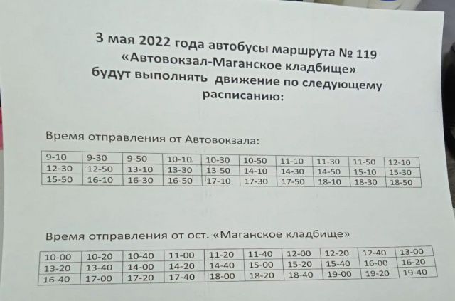 Сегодня, 3 мая, в Радоницу (Родительский день) для удобства горожан организовано автобусное движение от Автовокзала до кладбища на Маганском тракте.