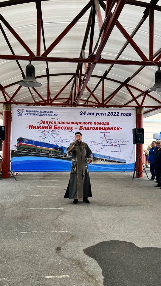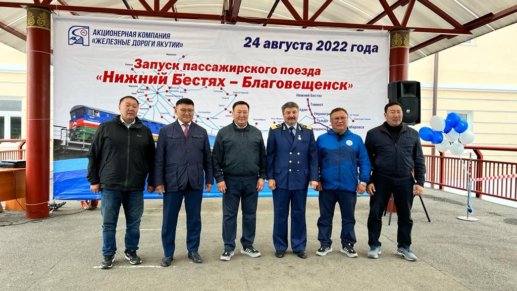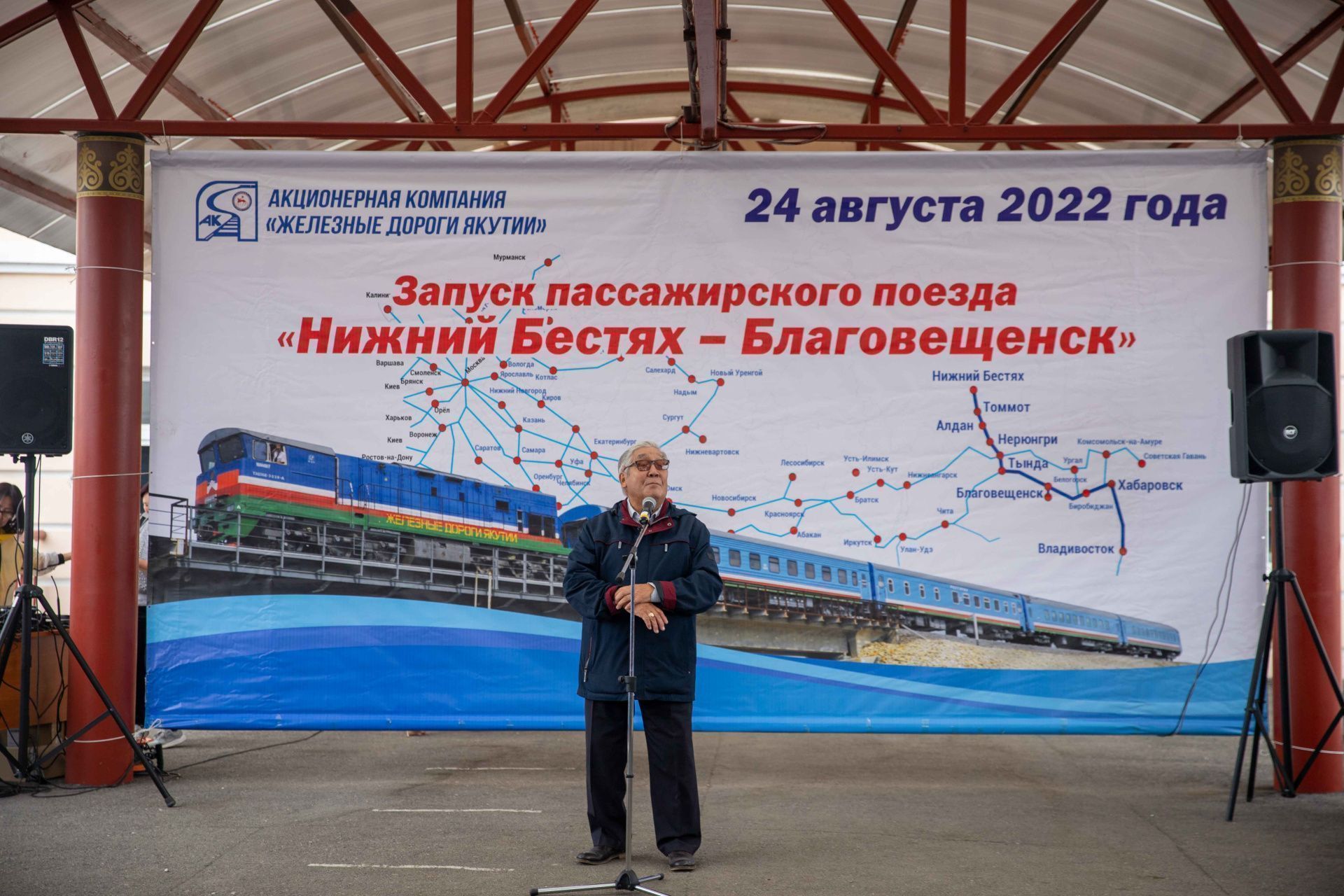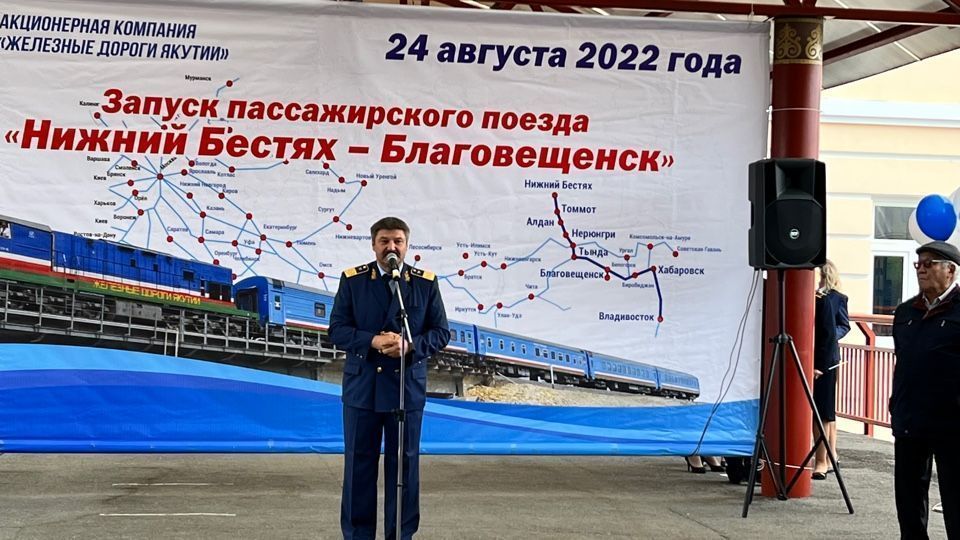 Выступая перед участниками торжественного мероприятия, генеральный директор Акционерной компании «Железные дороги Якутии» Василий Шимохин отметил, что железнодорожники делают все возможное, чтобы пассажирам было максимально комфортно: «Железнодорожный транспорт – это новый вид транспорта для республики. Уже три года мы осуществляем перевозки пассажиров со станции Нижний Бестях. Мы исправляем какие-то шероховатости, которые всегда присутствуют в любом виде транспорта, и вот сегодня мы сделали еще один шаг, небольшой шаг, но наш состав вместе с рестораном, вместе с ядром поезда будет ходить до Благовещенска. Да, это небольшие шаги, может быть, они не являются какими-то глобальными, но они направлены на то, чтобы максимально улучшить комфорт и наше транспортное обслуживание. Через некоторое время к нему будет присоединен почтово-багажный вагон, чтобы коммерсанты могли возить свои товары. Хочу вас всех поблагодарить за то, что вы пользуетесь услугами железнодорожного транспорта. Желаю, чтобы вы стали нашими постоянными клиентами, а мы вам будем максимально этом помогать» - сказал Василий Шимохин.