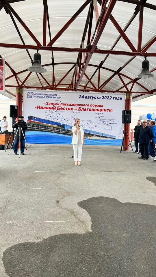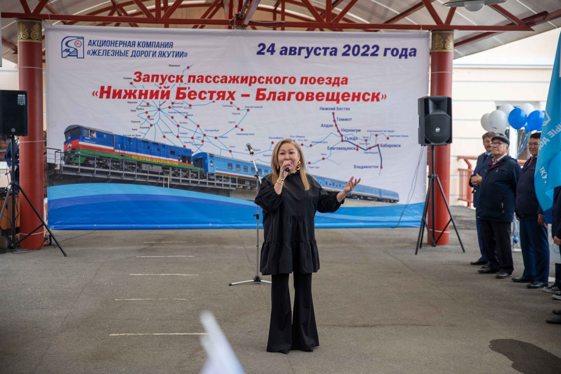 Для пассажиров и гостей выступили звезды якутской эстрады Анастасия Готовцева, Аскалон Павлов, Ника и Народный вокальный ансамбль Акционерной компании «Железные дороги Якутии».