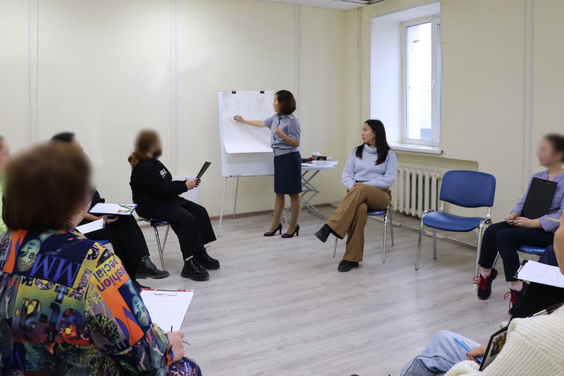 Первое занятие началось со знакомства и упражнения «История моего имени». Психолог Центра социально-психологической поддержки молодежи и семьи Республики Саха (Якутия) Татьяна Иванова разместила участниц в круг и предложила каждой рассказать о себе и значении своего имени. В процессе рассказа женщины коснулись истории своей семьи и познакомились.
