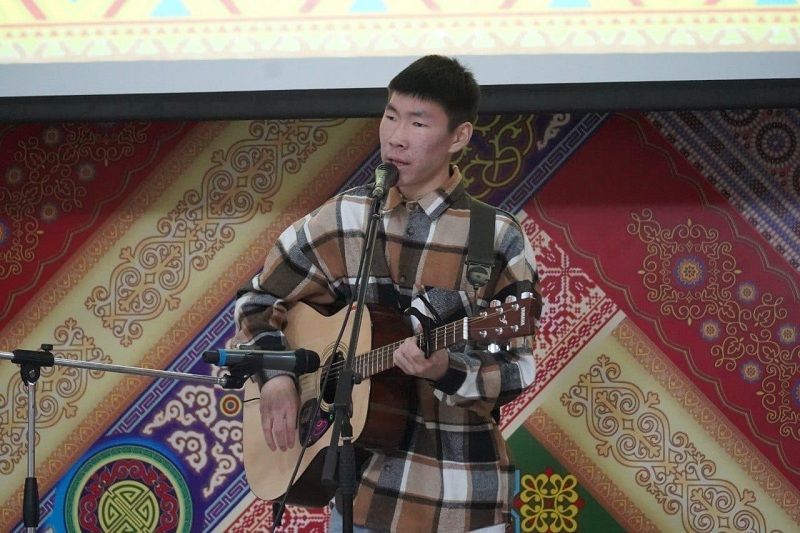 Собравшихся приветствовали также участники VII Молодежного суглана Августин Слепцов, Сахаяна Стручкова, Айал Прокопьев, исполнив авторский гимн ежегодного молодежного форума.