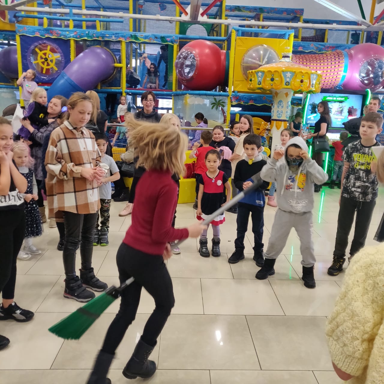 Ну и как же в этот праздник без метлы? С ней была проведена забавная эстафета. И следующее танцевальное развлечение называлось "Метёлки". Как уточнила ведущая: наша вечеринка в самом разгаре, пора попробовать себя в роли борцов с нечистью. У меня в руках «метёлка», сейчас мы будем передавать его друг другу, как эстафетную палочку. Итак, пока музыка звучит, быстро передаем, кого остановка музыки застает с «метёлкой» в руках, выходит ко мне. Дальше она зачитала ситуации, которые должны были обыграть участники под соответствующий музыкальный отрывок, используя метёлку в качестве реквизита. Это были герои сказок . "Баба-Яга на метле в праздничный день"; "Богатырь на коне едет биться с Кощеем»; "Борец со злом с магическим мечом" (фильм Ночной Дозор)"; Погоня за привидением с протогонным излучателем" (фильм Охотники за привидениями). К каждой ситуации звучала соответствующая музыка. И этот конкурс позволил участникам раскрепоститься, уйти от своих комплексов и показать себя настоящими артистами.