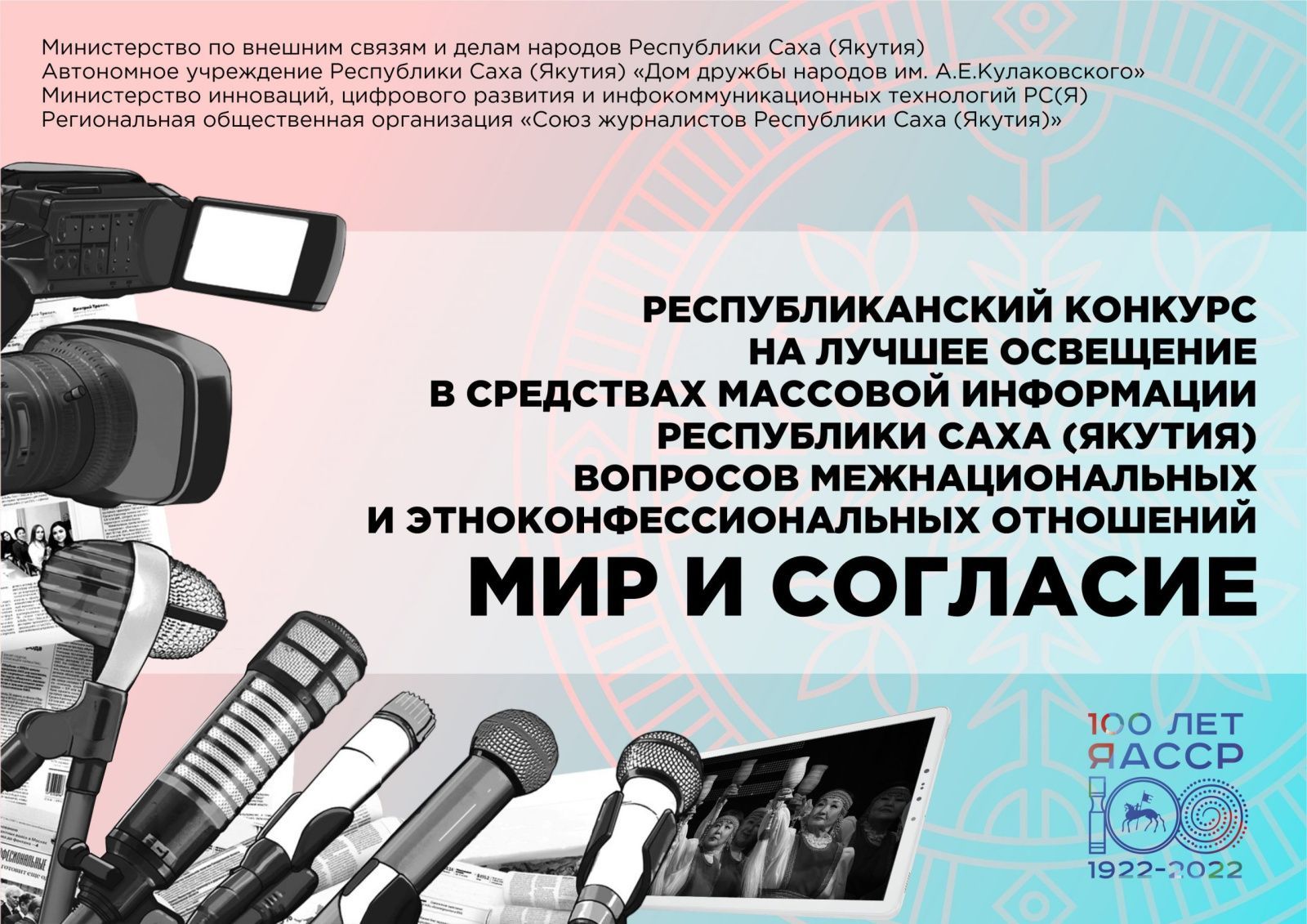 Конкурс проводится с целью поощрения профессиональной деятельности работников СМИ, освещающих историю, культуру, традиции народов, проживающих в Якутии, вопросы этнокультурного развития, укрепление межэтнического и религиозного согласия, деятельность государства и институтов гражданского общества по укреплению единства народов, гармонизации межнациональных отношений, профилактику экстремизма и привлечения журналистов к грамотному освещению этнокультурной тематики в медиапространстве.