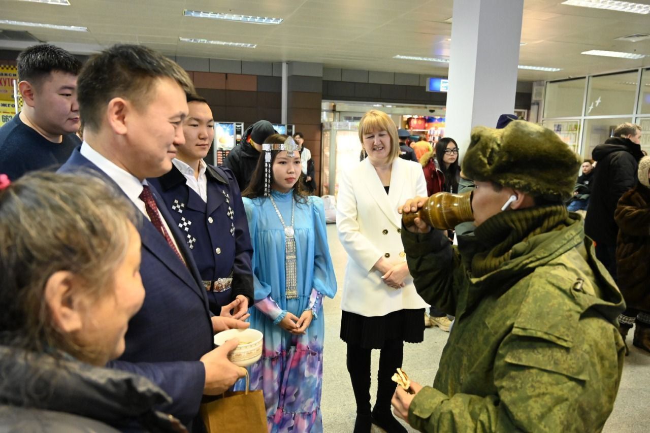 Прибывшему домой на побывку бойцу от имени главы республики Айсена Николаева подарили якутский нож. Сегодня в аэропорту Якутска министр Павел Иванов с сотрудниками Министерства имущественных и земельных отношений РС(Я) встретил приехавшего на побывку участника специальной военной операции Вадима Н., сообщает тгк Новости Якутии.