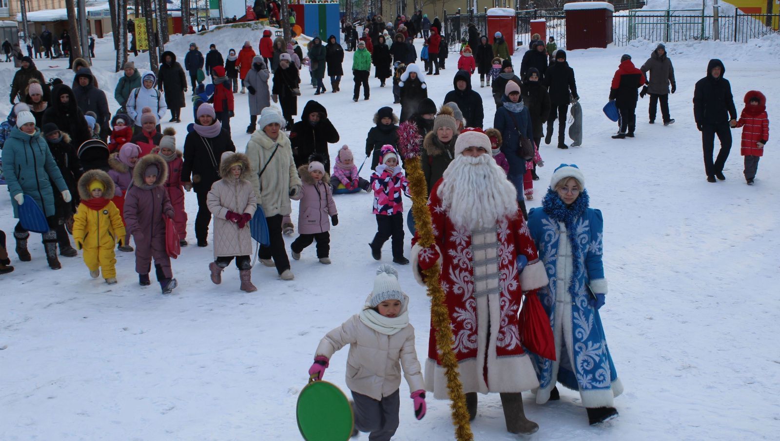 В этот день парк пришли Дед Мороз и Снегурочка.