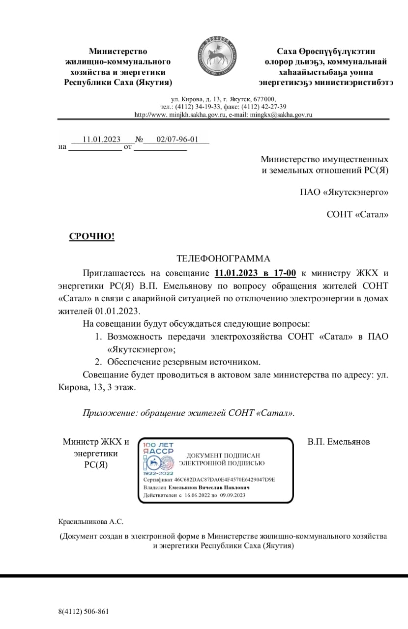 Жители СОНТ «Сатал» г. Якутска обращаются с просьбой провести прокурорскую проверку по факту отключения электроэнергии утром 1 января.