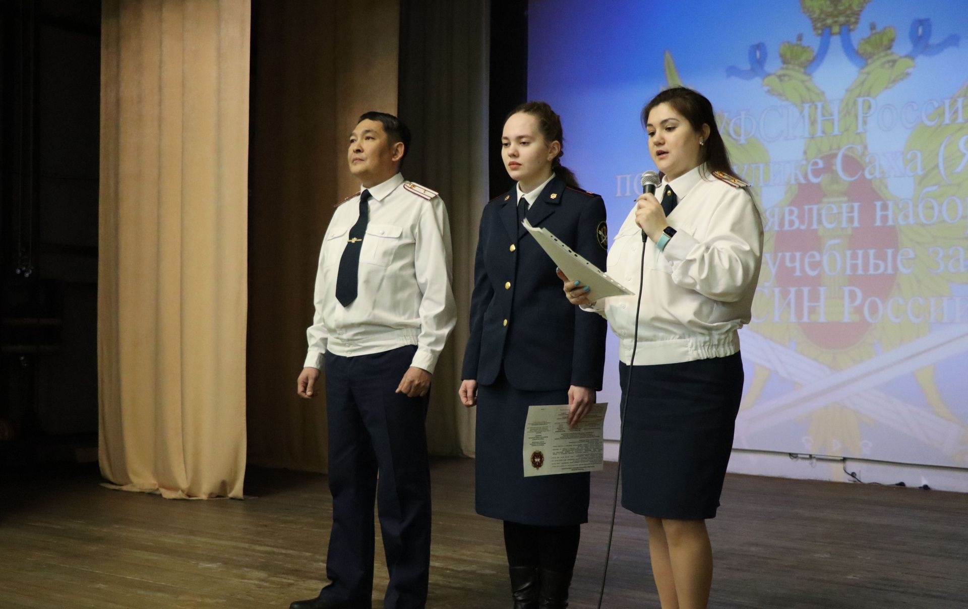 Сотрудники УФСИН Евгения Шестакова и Василий Стручков в рамках профориентационной работы встретились с учащимися 9-11 классов национальной политехнической школы № 2 г. Якутска.