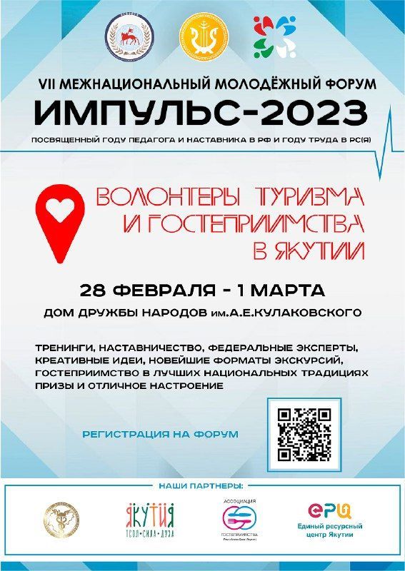 Партнеры Форума «Импульс»: ГАУ РС(Я) Агентство развития туризма и территориального маркетинга Якутии, Торгово-Промышленная Палата Республики Саха (Якутия), Ассоциация Гостеприимства Республики Саха (Якутия), АНО Центр развития инновационных команд и проектов «Креативный кластер» (г. Санкт-Петербург), Единый ресурсный центр поддержки СО НКО и развития гражданских инициатив РС(Я).