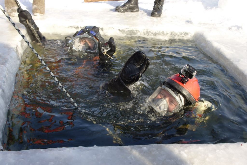 «Заранее на удалении от берега была подготовлена и оборудована рабочая майна, затем в течение нескольких часов отработаны не только последовательность действий водолазов во время спусков, но и оказание помощи пострадавшим, провалившимся под лед. Да, нас в основном, вызывают, когда беда уже произошла, но водолазы за период существования нашего подразделения спасли не одну человеческую жизнь», - отметил Юрий Юргин.