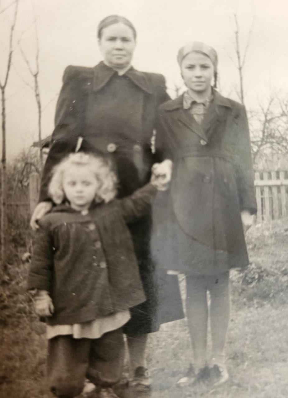 «После войны мама рассказывала, что в Германию их, молодых и крепких женщин, везли в товарном эшелоне. На каждой станции останавливались, и предлагали местным жителям работниц для сельхозработ. Так маму отдали на работу некоей фрау Торн (урожденной Берте Лауч из Хаммерсдорфа). Потом мама попала в концлагерь города Шнайдемюль. 4 декабря 1944 года в этом лагере родилась я. Освободили нас с мамой советские войска 15 мая 1945 года, но ничего из лагеря я, конечно, не помню», — рассказала Анна Петровна.