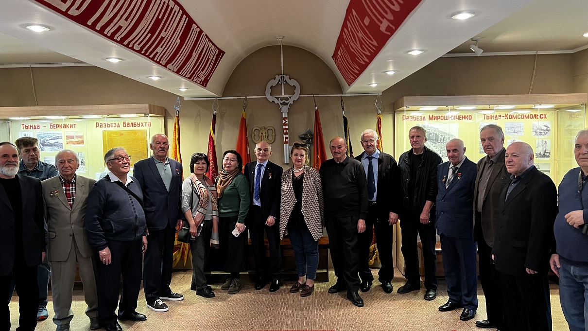 Ветераны БАМа и гости праздничного мероприятия посетили Музей истории БАМа, где их встретил сам директор музея Александр Бондаренко. Он обратился к ветеранам с просьбой высказать свое мнение и пожелания по дополнению экспозиции музея. Среди почетных гостей стали легендарные строители БАМа, Герои социалистического труда Вячеслав Аксенов, Виктор Лакомов и Леонид Казаков. Было очень волнительно наблюдать за тем, с каким интересом прославленные бамовцы рассматривали выставочные экспозиции, находили себя на фотографиях, и как загорались их глаза и молодели лица. Они вспоминали свою комсомольскую молодость, лучшие годы своей жизни, которые были отданы этой великой стройке века. Гостям показали документальный фильм о «золотой стыковке» БАМа. Исторические кадры навеяли воспоминания о том событии, о том счастье, которое они испытали от своей трудовой победы. И все, как один, решили обязательно встретиться в Тынде на праздновании 50-летия БАМа.