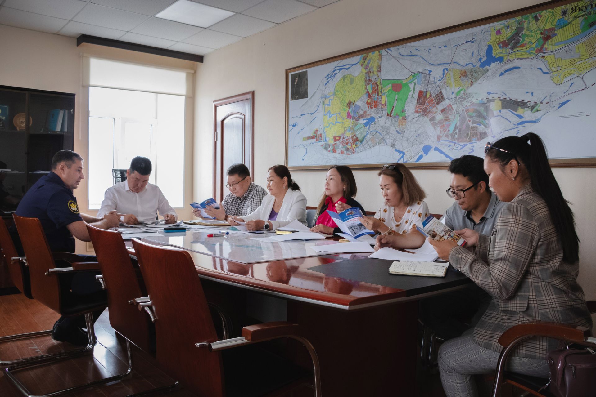 В ходе совещания, врио заместителя начальника УФСИН Станислав Тетерин презентовал председателю заместителя главы городского округа Егору Кардашевскому, начальнику управления муниципальных закупок Светлане Антоновой, руководителю МКУ «Службы эксплуатации городского хозяйства» Владимиру Аммосову, начальнику Управления образования Марии Петровой, начальнику Департамента по работе с территориями Владиславу Слепцову, начальнику Департамента жилищно-коммунального хозяйства и энергетики Максиму Шомоеву каталог продукции с детальным описанием выпускаемых в центрах трудовой адаптации наименований, с фотографиями и указанием стоимости изделий.