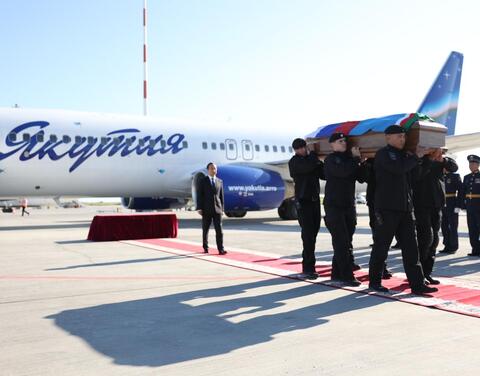 Почетный караул пронес по красной дорожке гроб и установил его в катафалк. Колонна в сопровождении автомобилей ГИБДД начала движение по направлению в Государственный театр оперы и балета.