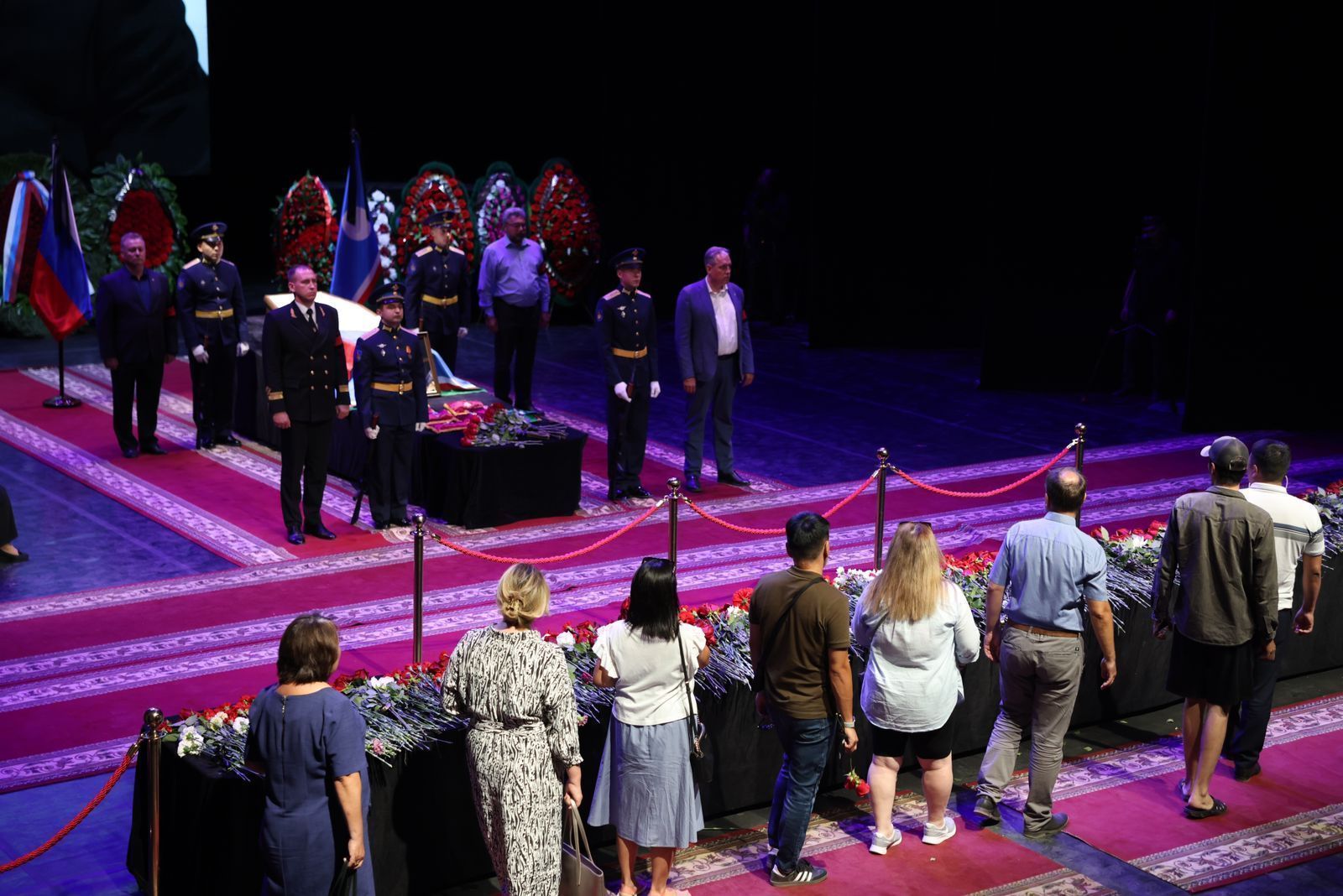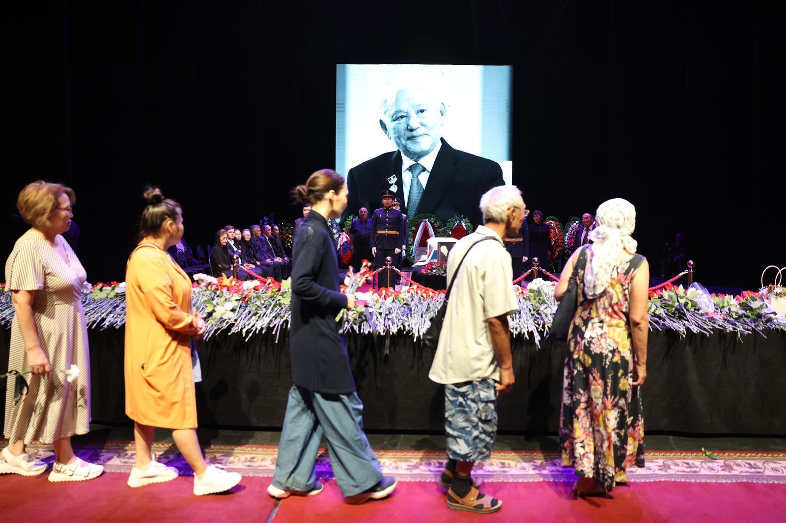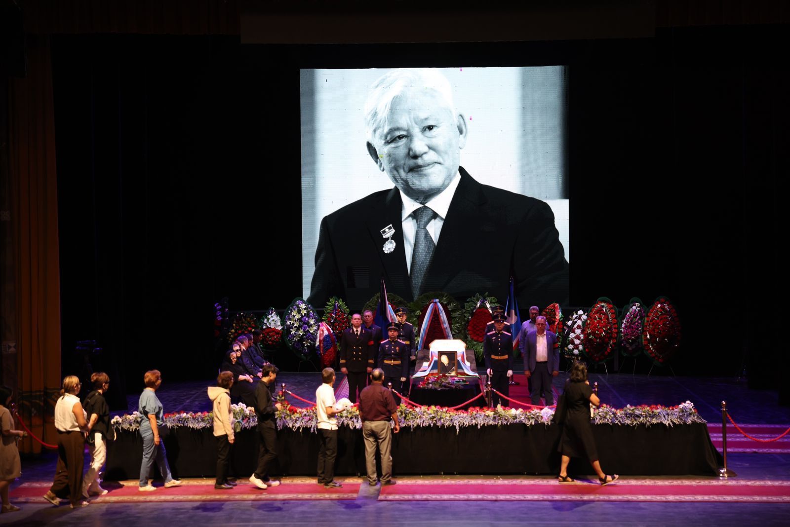 В Якутске в театре оперы и балета идет церемония прощания с первым президентом Якутии Михаилом Николаевым. Проститься пришли глава Якутии Айсен Николаев, старейшины, соратники, члены Совета Федерации, народные депутаты, члены правительства, общественные деятели и многие другие.