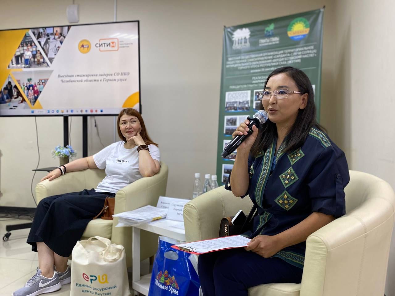 Напомним, что в результате стажировки, участники разработают «Стратегию развития НКО на три года» и «План работы с командой в НКО», внедрят новые технологии по развитию территорий в муниципальных образованиях Челябинской области. Мероприятие прошло в Якутске и Горном улусе 2-6 августа в рамках проекта «Повышение эффективности деятельности СО НКО Челябинской области через внедрение передовых межрегиональных практик и технологий путём организации стажировки в РС(Я)» с использованием гранта губернатора Челябинской области некоммерческим организациям, предоставленного Фондом поддержки гражданских инициатив Южного Урала.