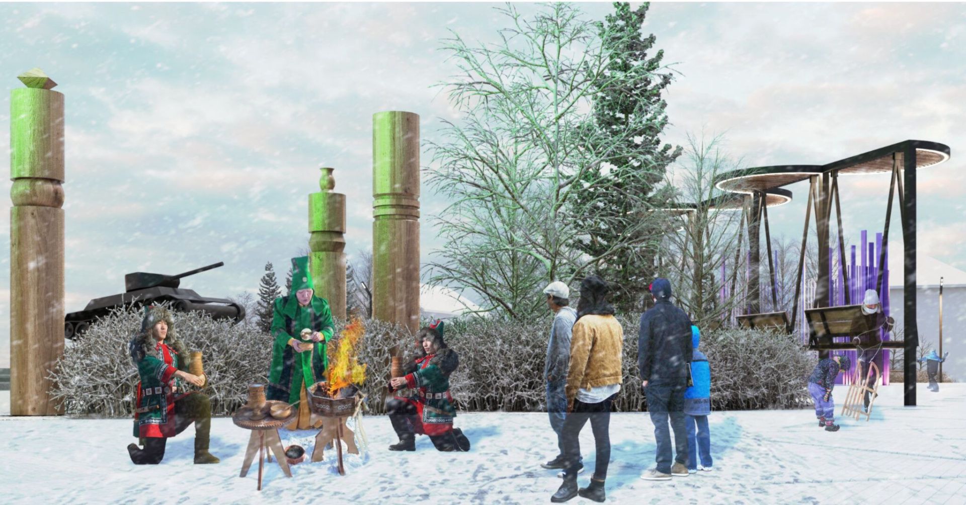 Эта городская площадь — место силы, отражающее культуру Якутии. Здесь сохраняются существующие сэргэ и создаются пространства, где разные народы будут проводить свои традиционные праздники. Также в Среднеколымске развит северный туризм, сюда часто приезжают исследователи или экстремальные туристы — площадь поможет им познакомиться с городской идентичностью, локальными сообществами и традициями, считают авторы проекта из архитектурного бюро «Номадо».
