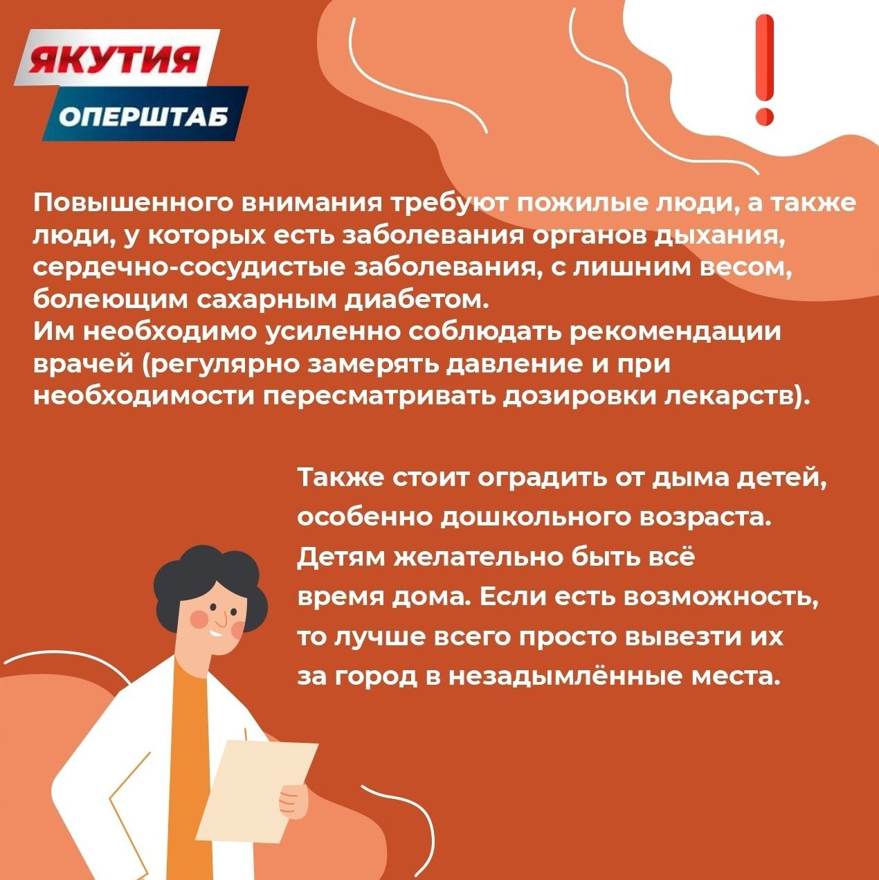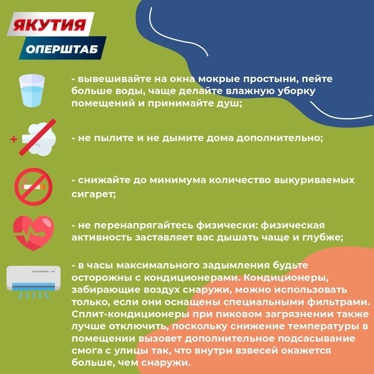 При появлении задымления от природных пожаров Министерство здравоохранения Якутии рекомендует придерживаться следующих правил: