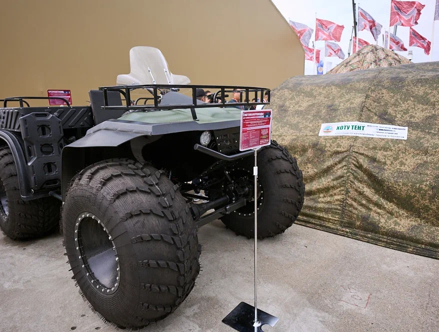 Второй участник выставки – компания «Якт Сокол». Их снегоболотоходы «Сокол» отлично зарекомендовали себя в зоне СВО: сверхвысокая проходимость техники и способность преодолевать вплавь небольшие водные преграды делает технику крайне эффективной в условиях бездорожья. При этом бойцы отмечают очень важную характеристику – машины «Якт Сокол» очень тихие и быстрые. Это позволяет в сумерках, когда очень плохо видна дорога, быстро и тихо завезти на линию огня боеприпасы, продукты, вывезти раненых.