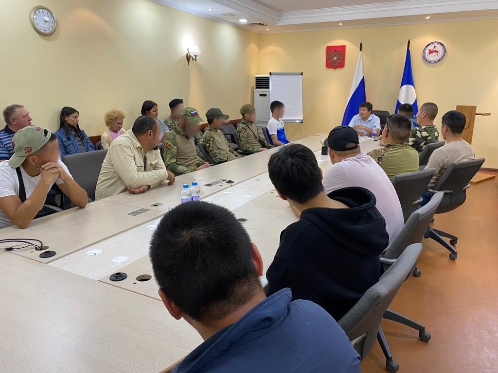 Сегодня, 18 августа, руководитель Департамента внутренней политики администрации главы и правительства Якутии Александр Трофимов торжественно вручил большой группе военнослужащих, прибывших в краткосрочный отпуск на родину из зоны проведение специальной военной операции, якутские ножи.