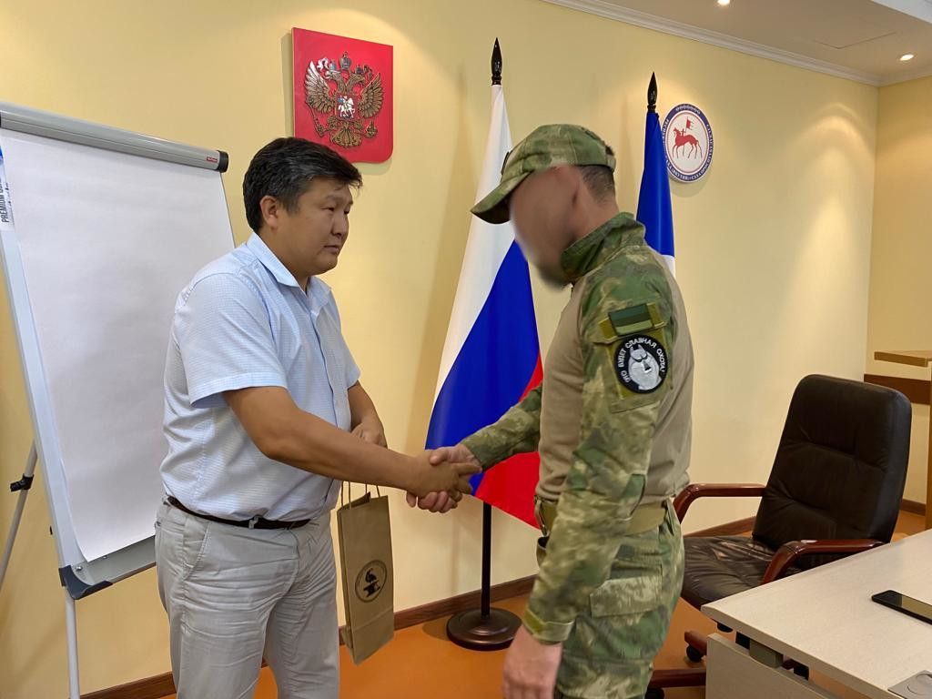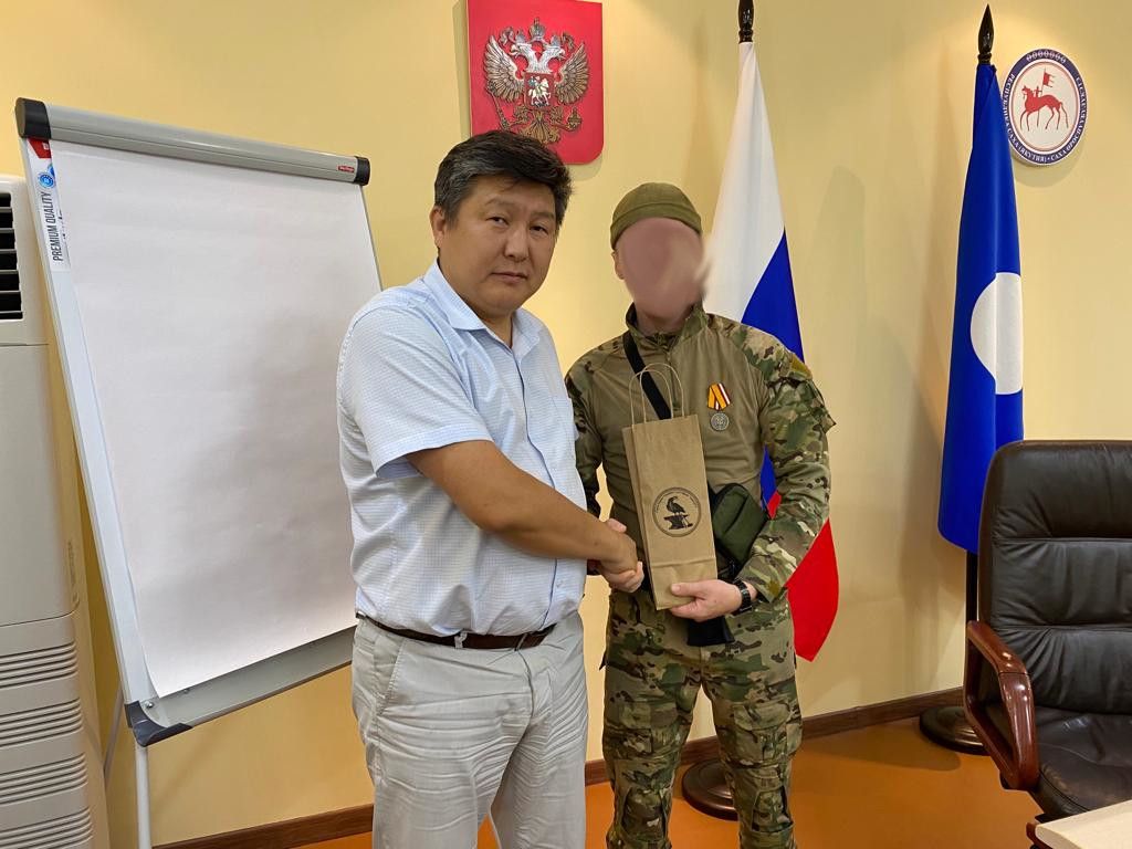 Ранее якутские ножи по поручению главы республики в Администрации главы и правительства региона военнослужащим вручил советник Ил Дархана Александр Канин.