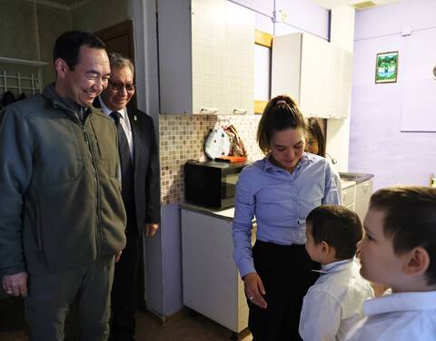 Глава Якутии Айсен Николаев в ходе рабочей поездки в Оленекский эвенкийский национальный район навестил в с. Оленек семью военнослужащего, участника специальной военной операции.