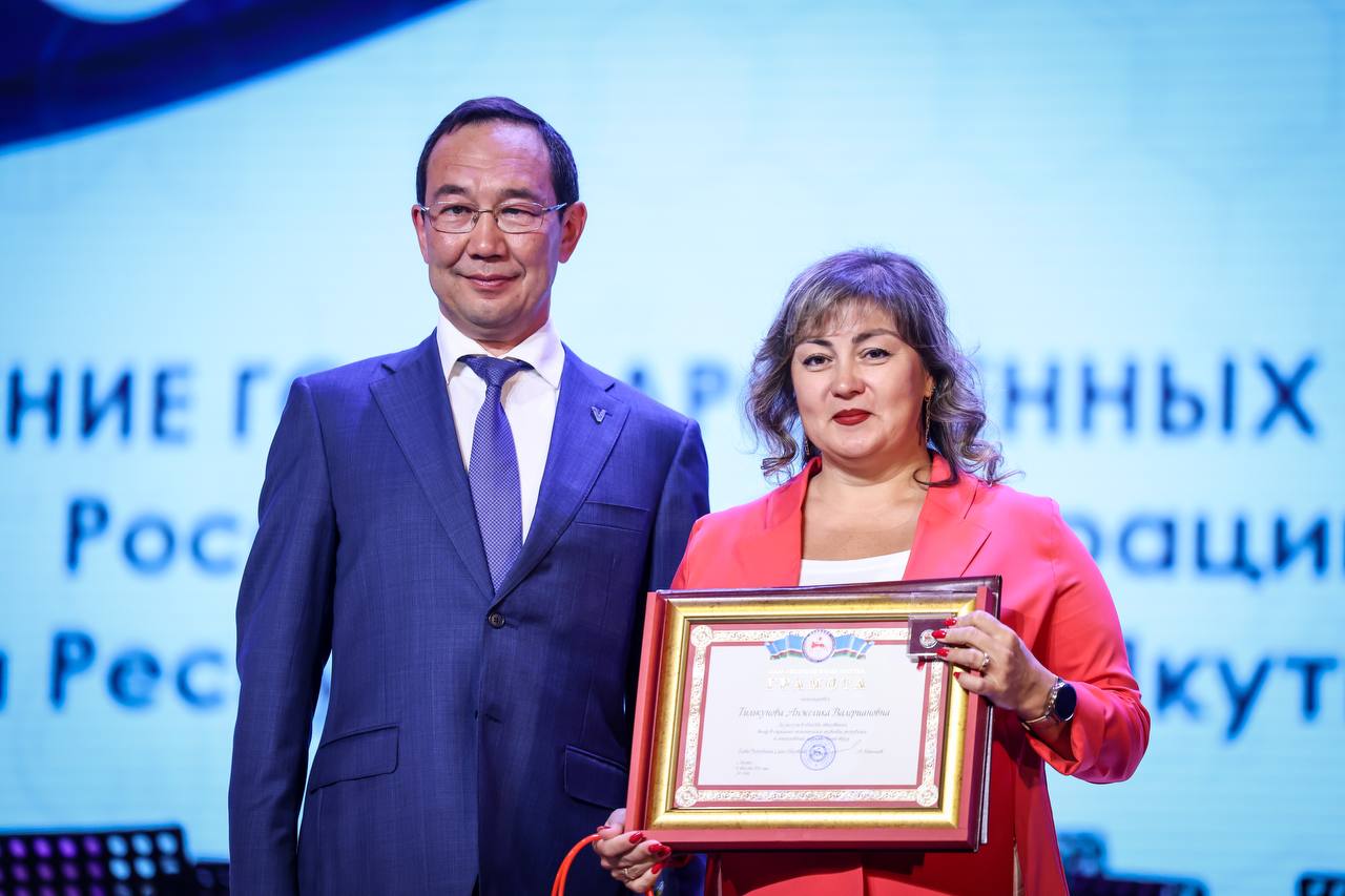 Знаком отличия «Гражданская доблесть» отмечен учитель Республиканского лицея-интерната Павел Тимофеев. Грамотой Главы Республики Саха (Якутия) награждены учителя: Намской средней школы №1 Анна Колесова и средней школы №2 городского округа «Жатай» Анжелика Тилькунова.